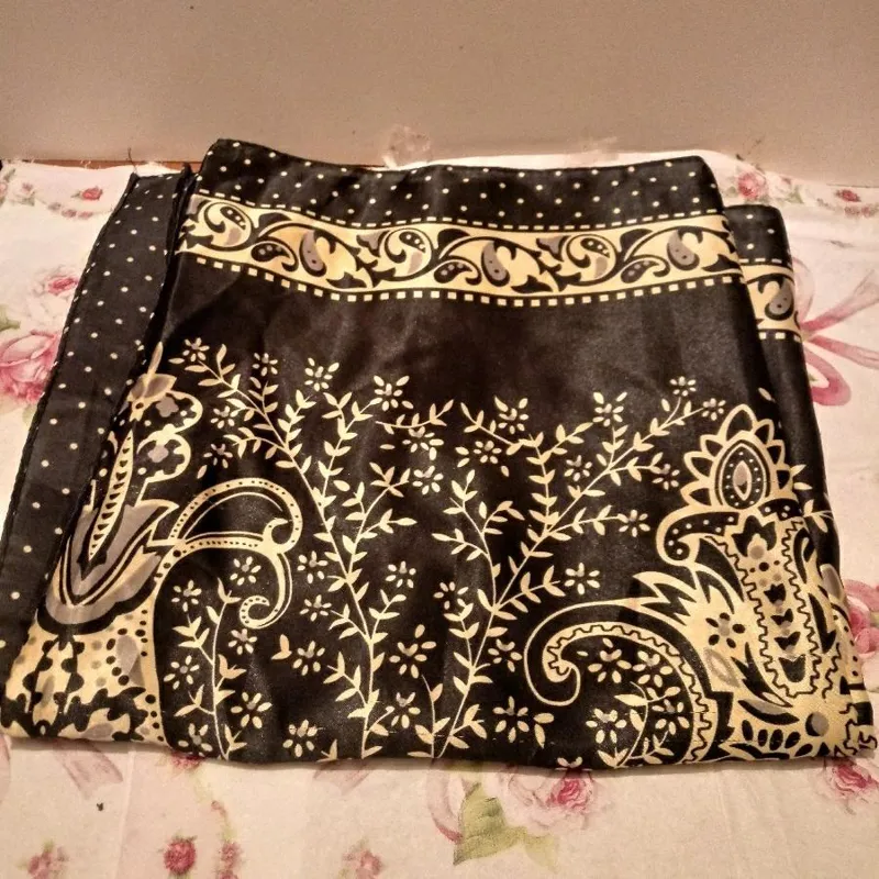 روسری مجلسی گلدار گل ریز زیبای زنانه.سایز ایکس لارج.معمولی.رنگ و نقش دقیقا مطابق تصویر .مخصوص مجالس .پارچه ساتن حریر هست.اسم شرکت سازنده ش رو دقیقا نمیدونم