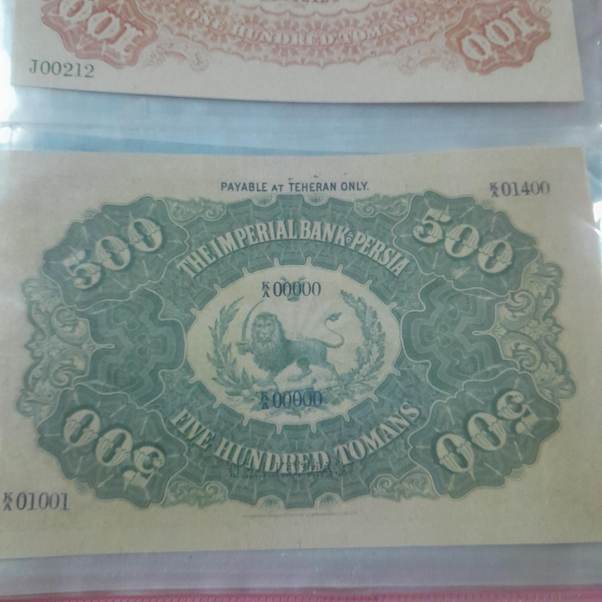 اسکناس طرح. صد تومانی 500 تومانی قاجاری