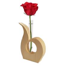 گلدان چوبی مدل لاله ، یک گلدان زیبا با طراحی نوین می باشد که از جنس چوب مرغوب و با کیفیت تولید شده است . شکل ظاهری گلدان همانند لاله ای است که یکی از گلبرگ های آن به سمت داخل برگشته و گلبرگ دیگر همانند حالت معمول باز می باشد ، اما زیبایی این گلدان فانتزی را می توان محفظه لوله ای شکل شفافی دانست که در میان دو گلبرگ جای داده شده . این محفظه دارای دهانه ای کوچک به قطر 1 سانتی متر می باشد که محل قرارگیری یک یا حداکثر دو شاخه گل متناسب با ابعاد محفظه است . در میان لاله چوبی شاخه گلی زیبا قرار می گیرد که می تواند زیبایی و جلوه ای متفاوت را برای تزئین روی میز شما به ارمغال بیاورد .