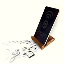 پایه نگهدارنده موبایل صدا افزون ، محصولی با طراحی ظاهری ساده از نوع رومیزی همراه با عملکردی بسیار کاربردی برای افراد مختلف است . این استند موبایل از جنس چوب مرغوب و با کیفیت تولید و توسط لایه از رنگ پوشش داده شده . لایه ای که دارای 3 تنوع رنگی مختلف برای ایجاد امکان انتخاب توسط کاربر می باشد . بر روی سطح استند شیار بزرگی جهت قرار گیری تلفن همراه تعبیه شده که در پشت آن دو شیار کوچکتر به همراه یک قطعه چوبی مستطیلی شکل وجود دارد ، قطعه ای که کاملاً از نگهدارنده اصلی جدا است ، این قطعه می تواند درون هر یک از شیار ها بسته به نیاز به صورت عمودی و افقی قرار گیرد و نقش یک تکیه گاه برای حفاظت بیشتر موبایل بر روی استند را ایفا کند . وجود دو شیار نیز امکان تغییر زاویه نمایشگر تلفن همراه را برای شما امکان پذیر می کند . اما وجه تمایز پایه نگهدارنده موبایل چوبی با سایر نمونه های مشابهش را قابلیت افزایش صدا در تلفن های سری جدید می توان عنوان نمود که اسپیکر آنها در زیر قرار دارند . کافیست تلفن همراه خود را بر روی استند جای دهید تا شاهد افزایش صدای آن باشید . موبایل خود را بر روی پایه نگهدارنده موبایل رومیزی قرار دهید و از آن برای تماشای فیلم ، مطالعه کتب الکترونیکی ، ویدئو کنفرانس ، شرکت در کلاس های غیر حضوری و ... به ساده ترین شکل ممکن استفاده نمایید .