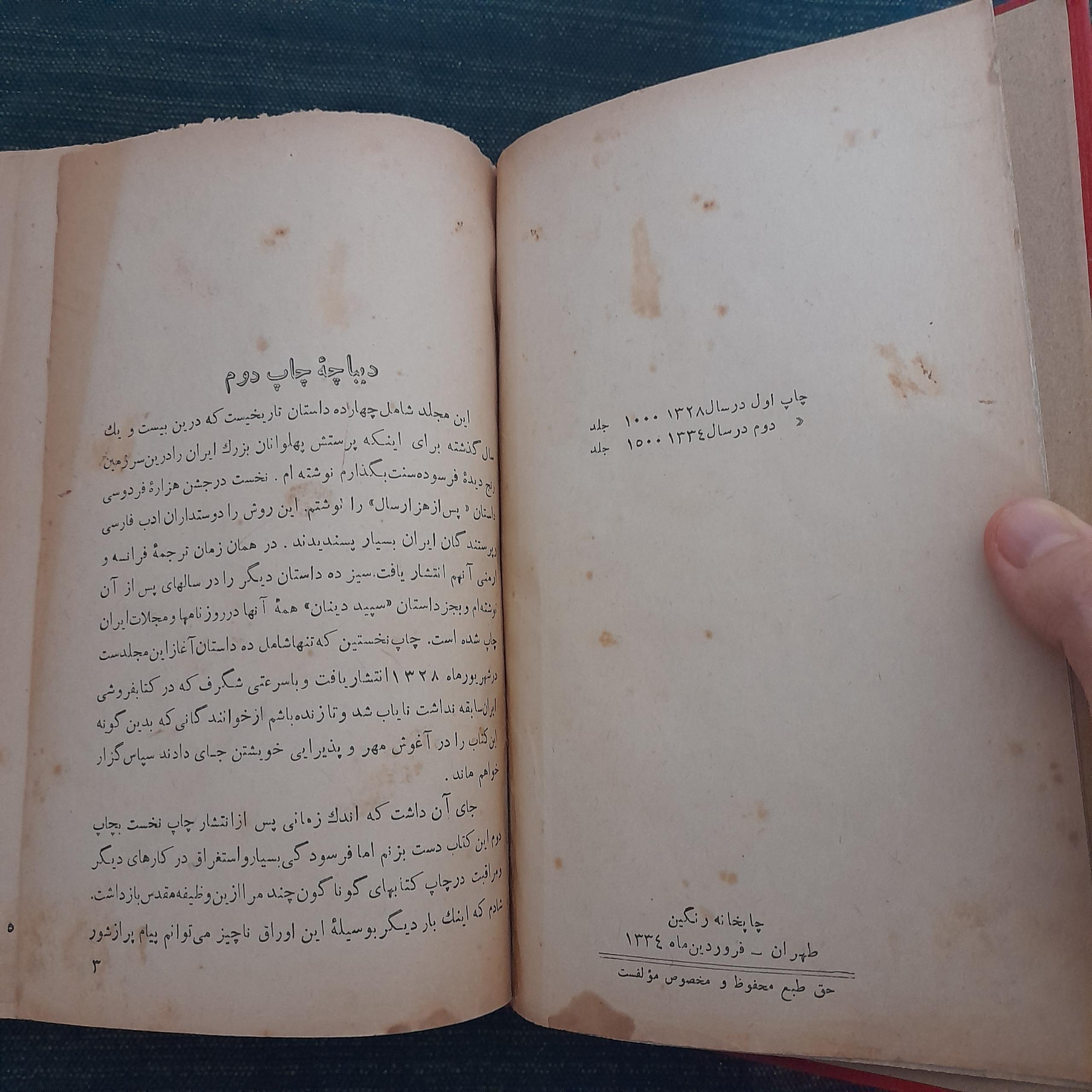 کتاب کمیاب است، یک جای مهر و یک نوشته با خودکار اول کتاب دارد، یک مورد جای تعمیر، یک صفحه پاره گی مطابق تصویر آخر کتاب دارد.