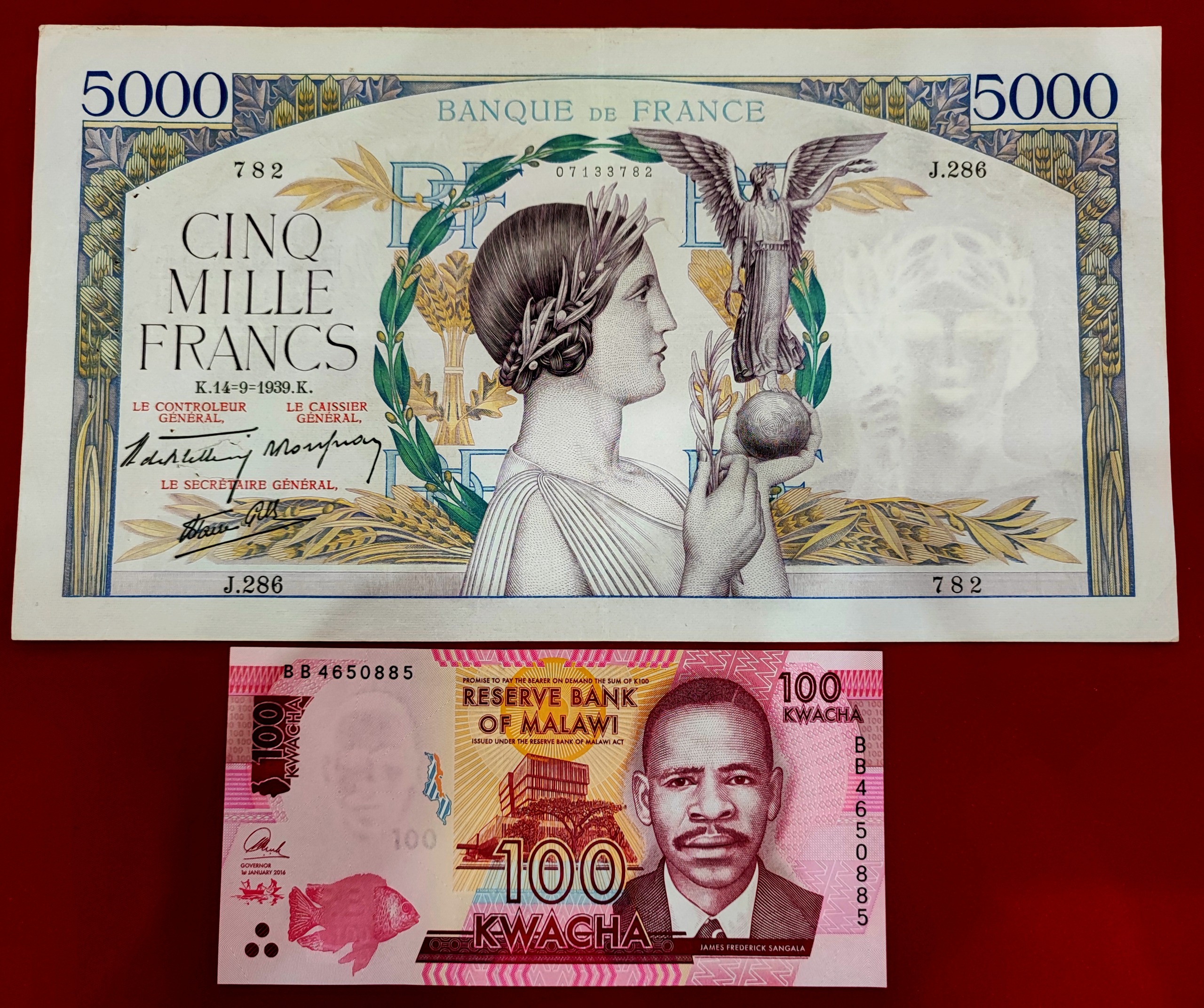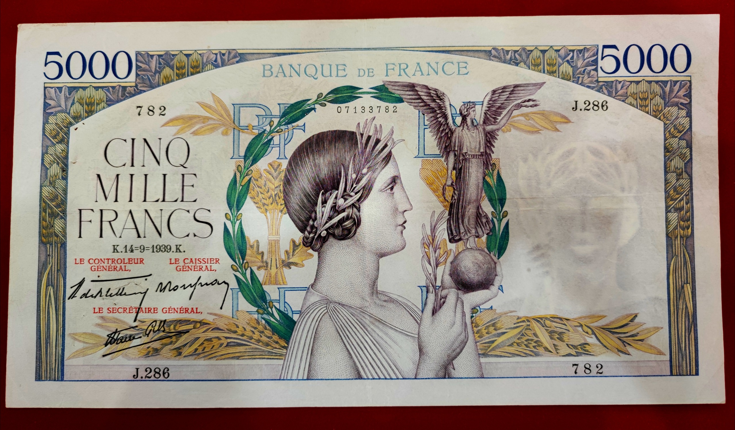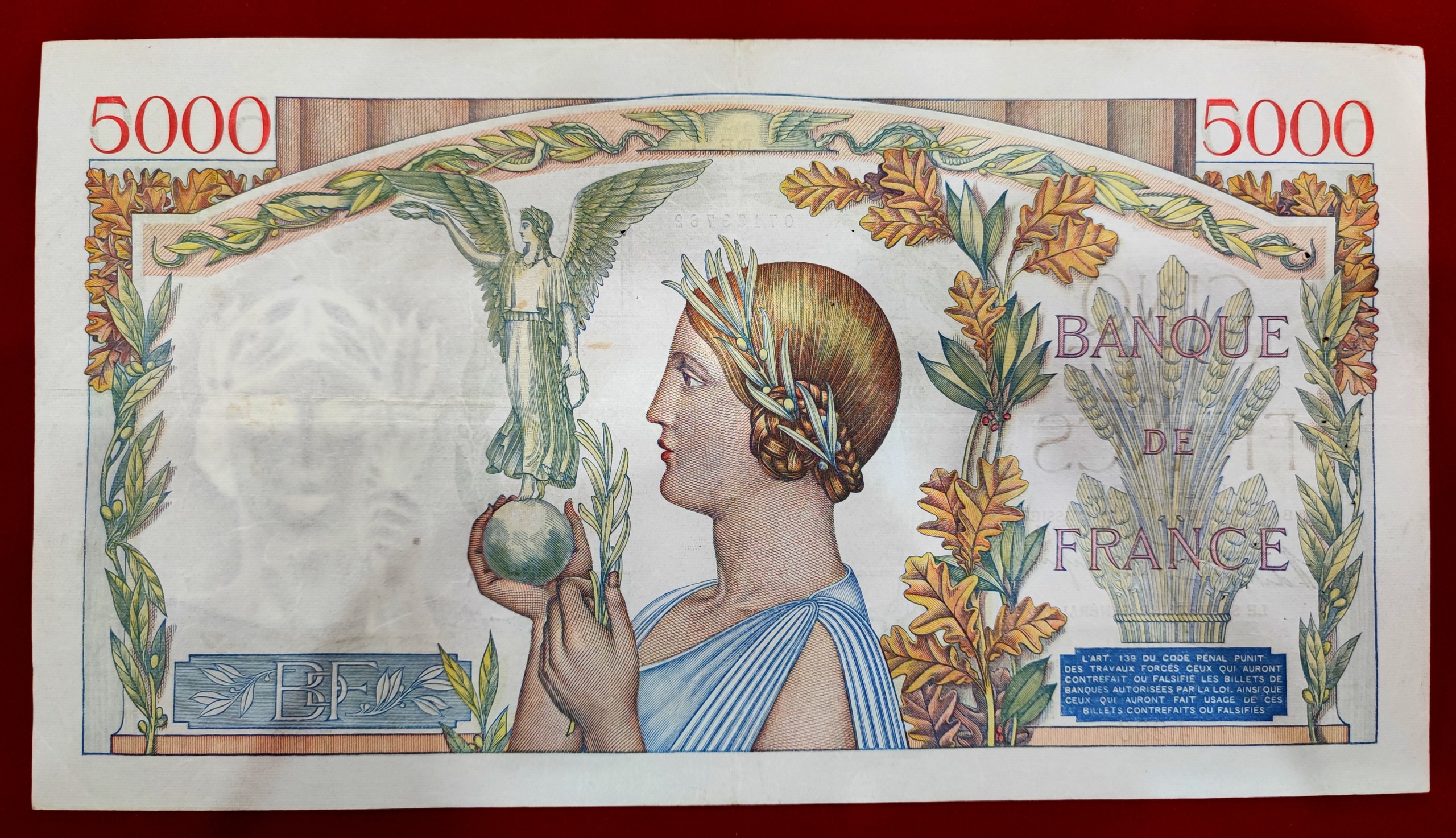 اسکناس کمیاب 5000 فرانک فرانسه سال 1939