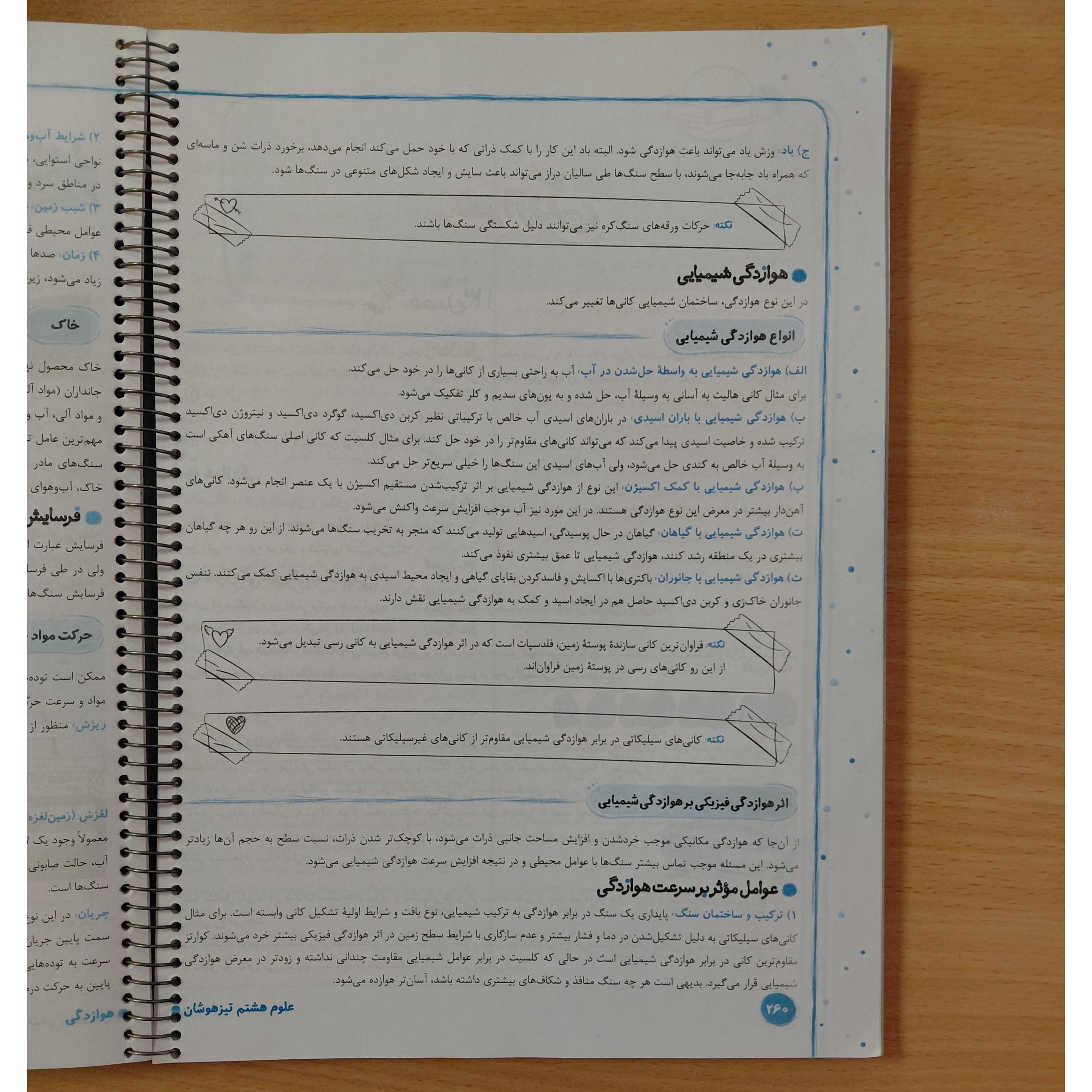 یک جلد کتاب تست و کمک درسی با عنوان "علوم هشتم تیزهوشان" دارای درسنامه و سوالات چهارم گزینه ای با جواب. مناسب دانش آموزان پایه هشتم متوسطه اول برای امتحانات تیزهوشان و مدارس برتر، چاپ انتشارات خیلی سبز، 1401 در 397 صفحه