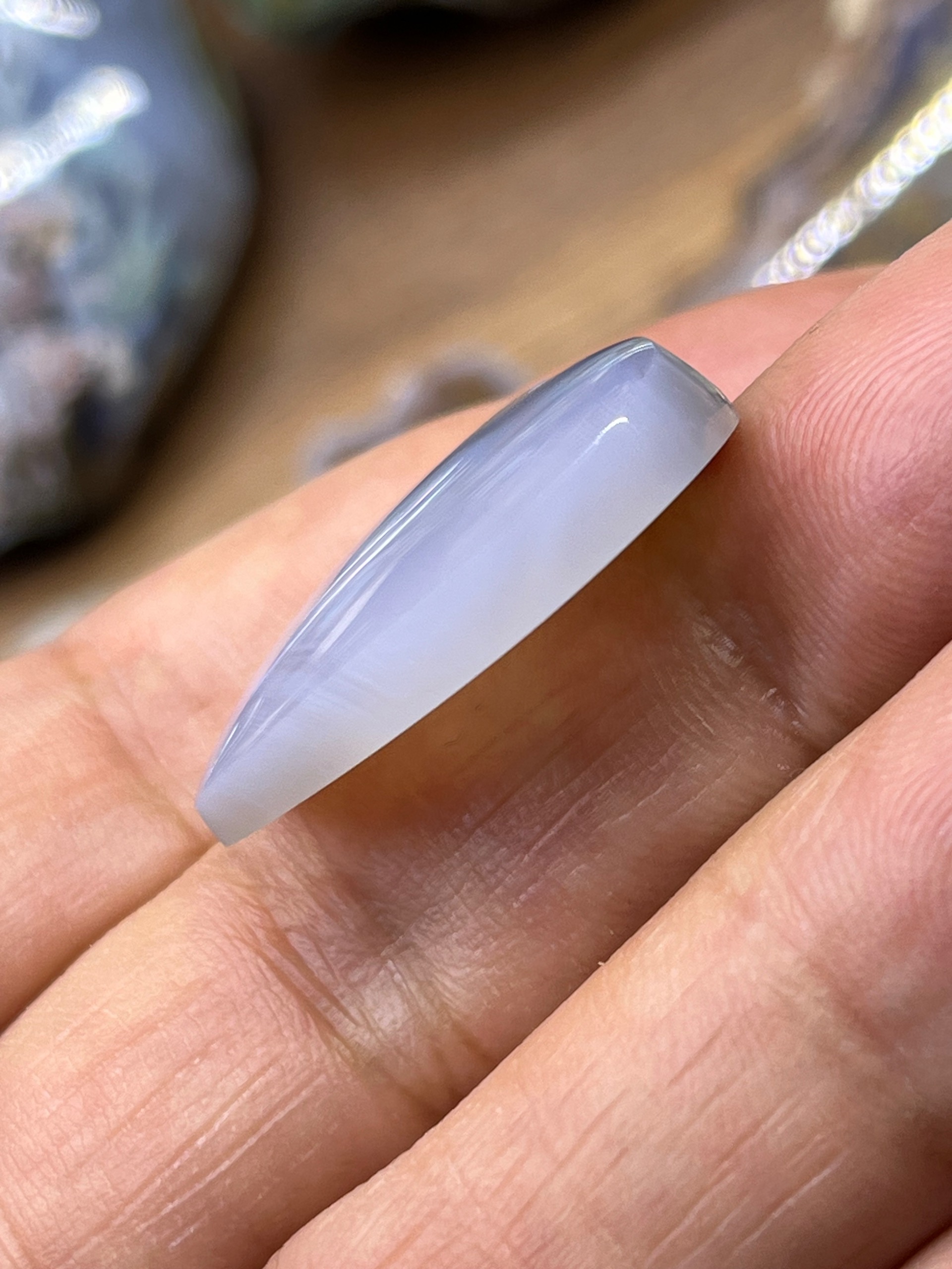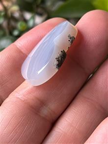 نگین عقیق ناب خراسان جنوبی با نقش ملیح و نرم خطوط به رنگ طوسی خیلی روشن