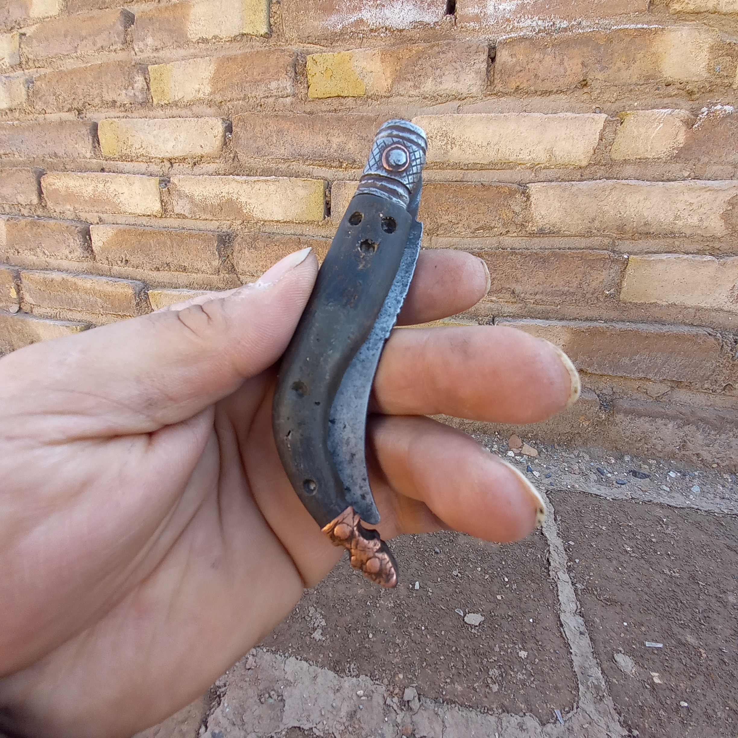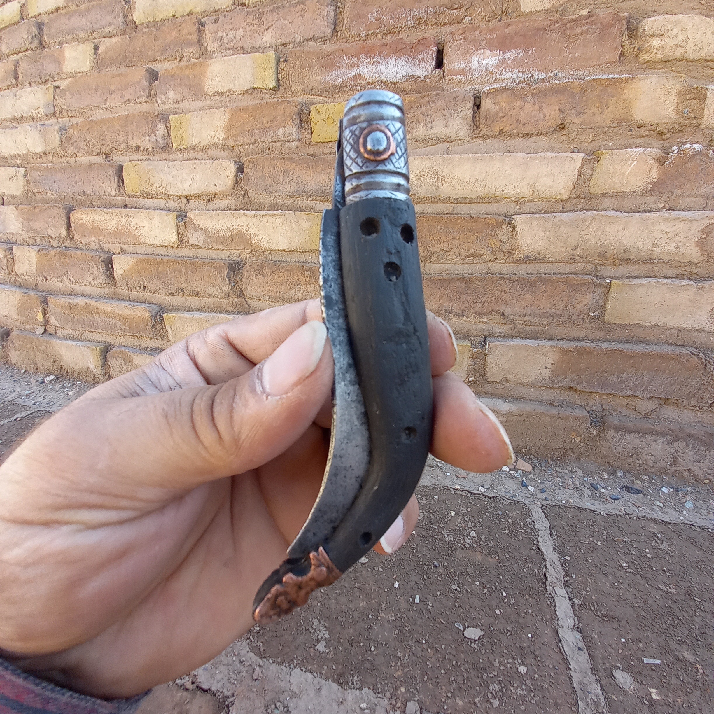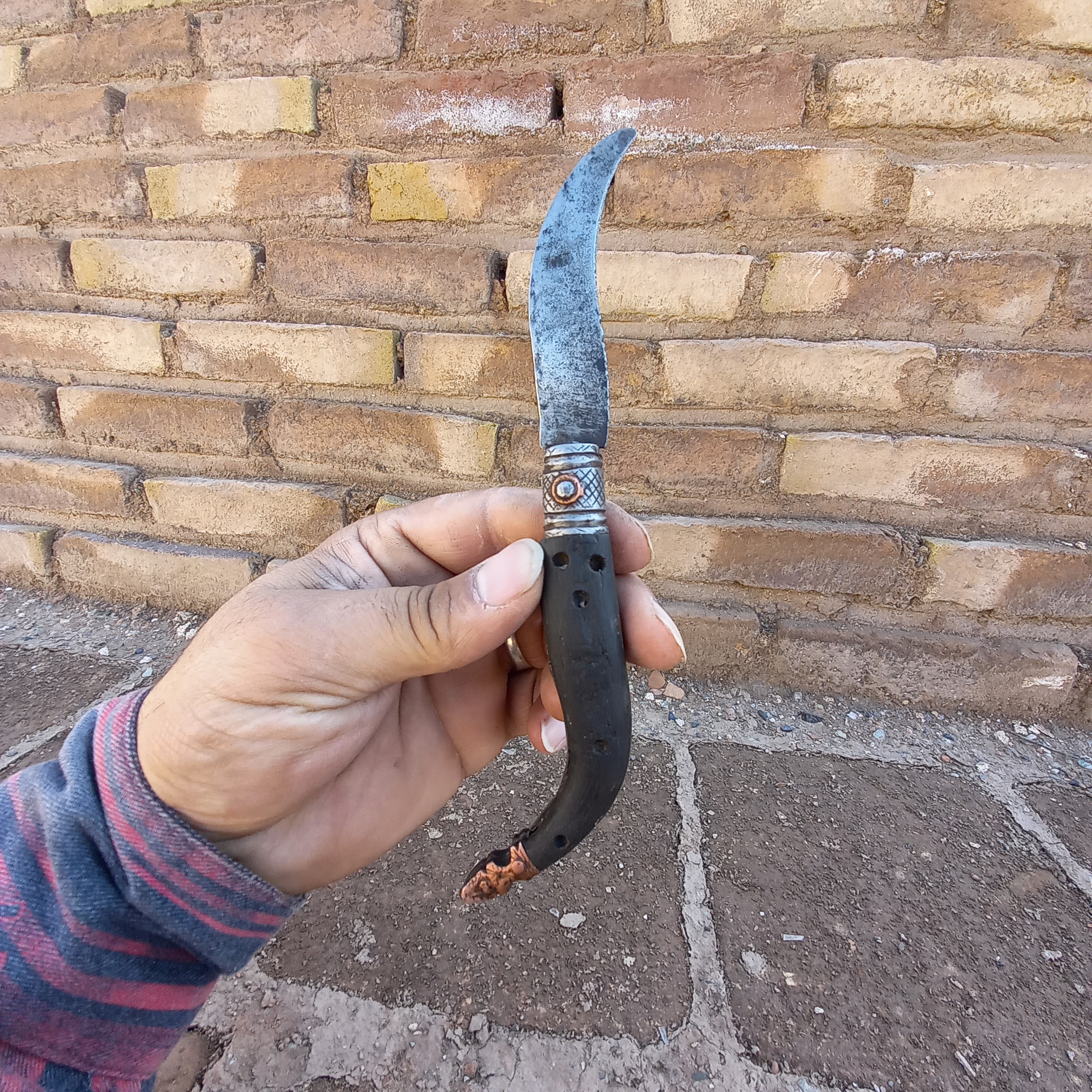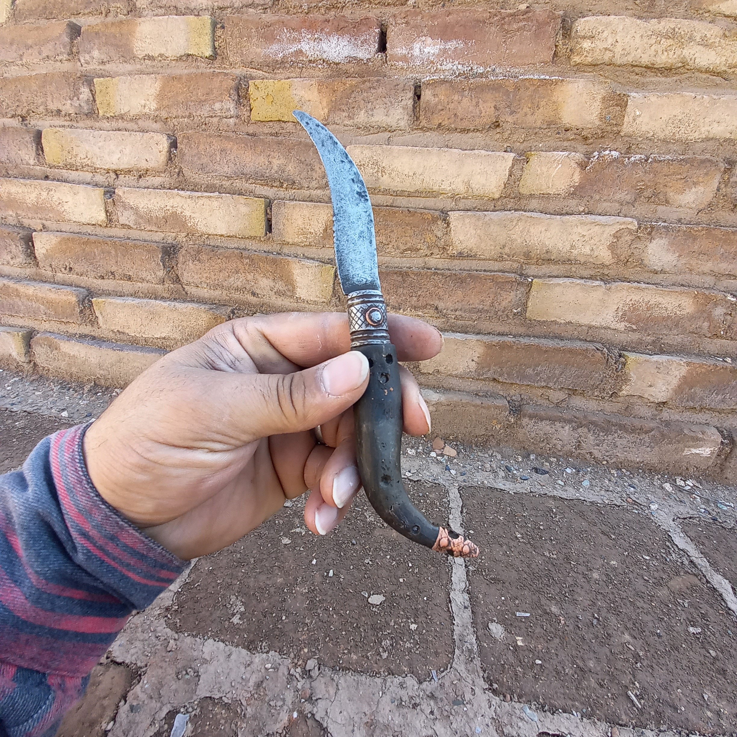 چاقو دسته شاخ سوهانکاری شده قاجاری