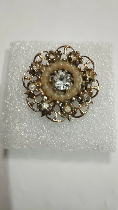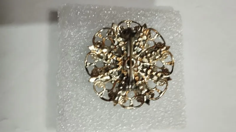 گل سینه قدیمی برنج یا استیل درست نمیدونم حدودا.  5سانت عزیزان قبل از خرید دقت کنید مرجویی ندارم