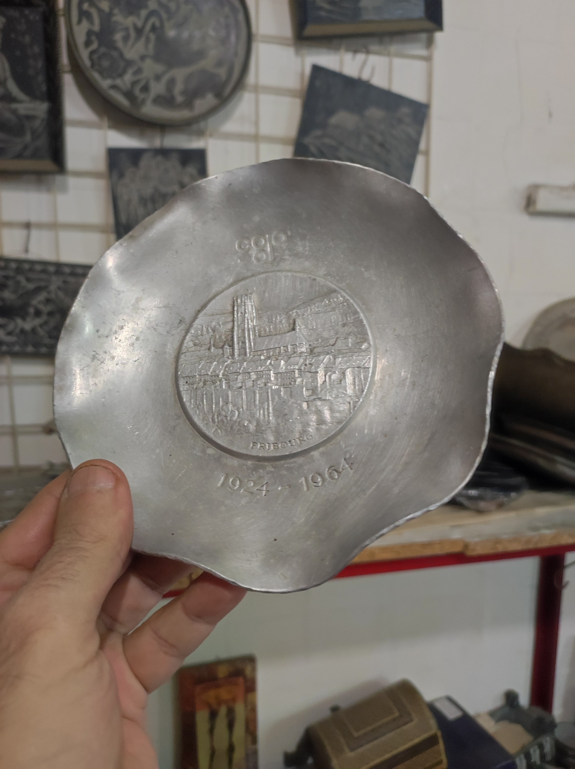 بشقاب جنس پیوتر آلمانی اصیل برجسته زیبا و فسقلی