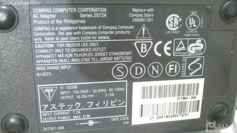 شارژر کمیاب لپ تاپ کامپک COMPAQ سری 2872A