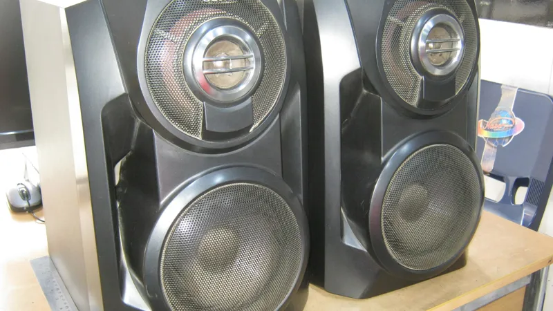 تیوتر ها مقداری پارگی دارد ولی بلند گوی های بزرگ و اصلیش و همچنین ساب سالم و بدون پارگی هست