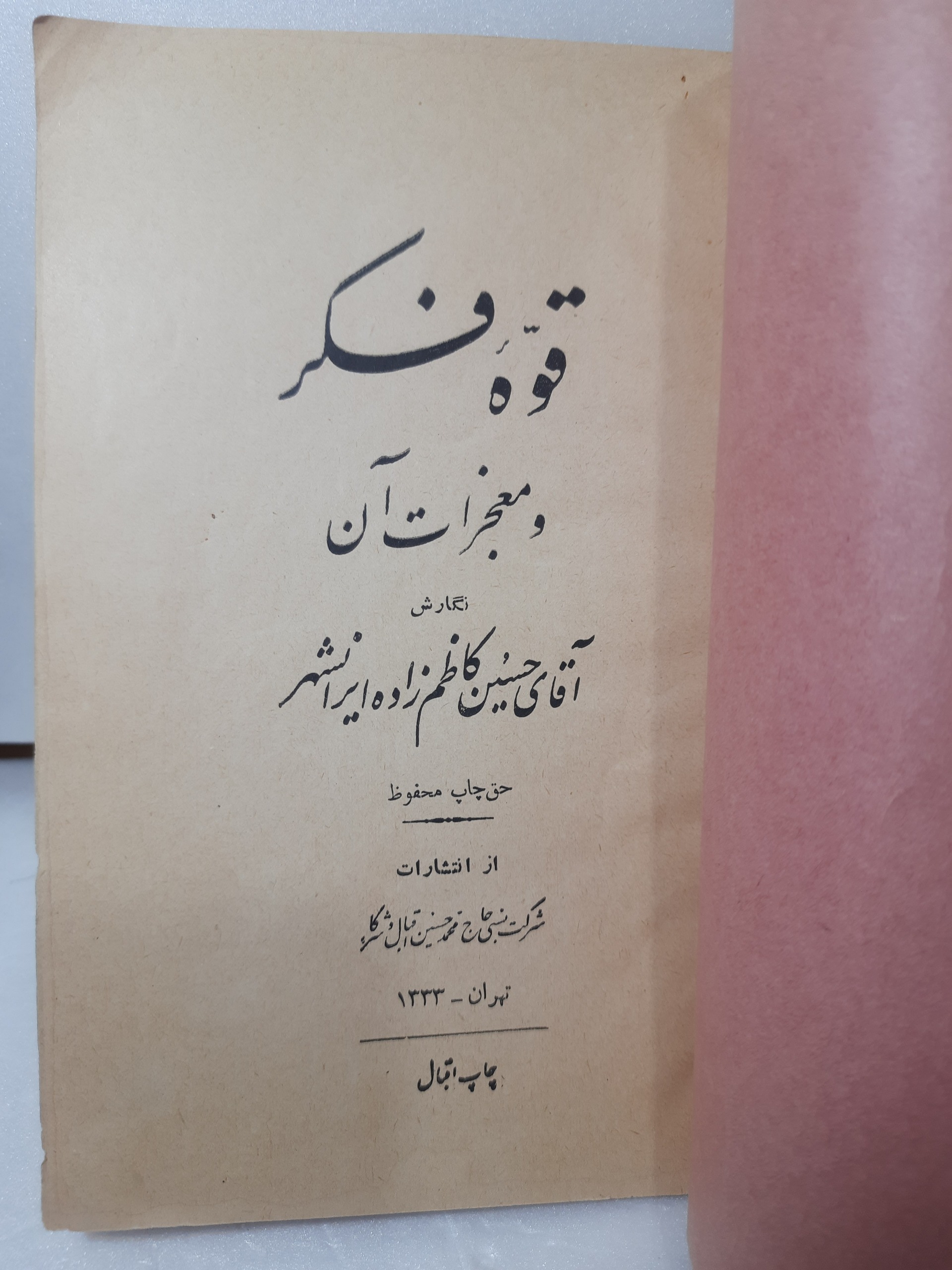 قوه فکر و معجزات آن از کاظم زاده نایاب سال1333