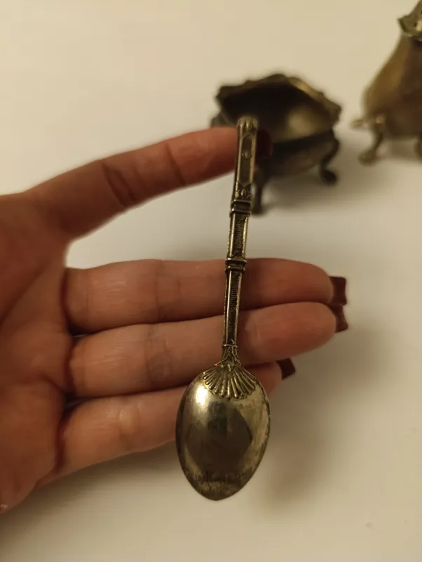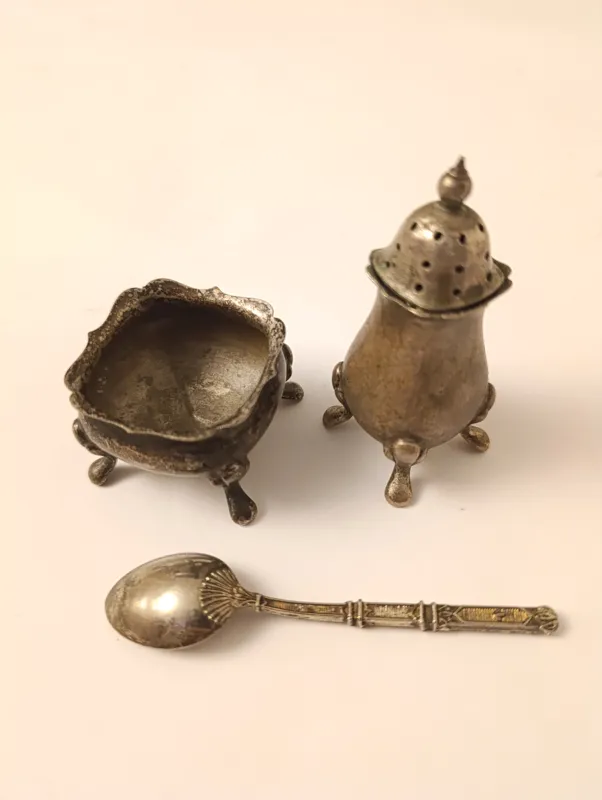 نمکدان به همراه جای خاویار به همراه یه قاشق که با مجموعه ست شده مارکدار EPNS