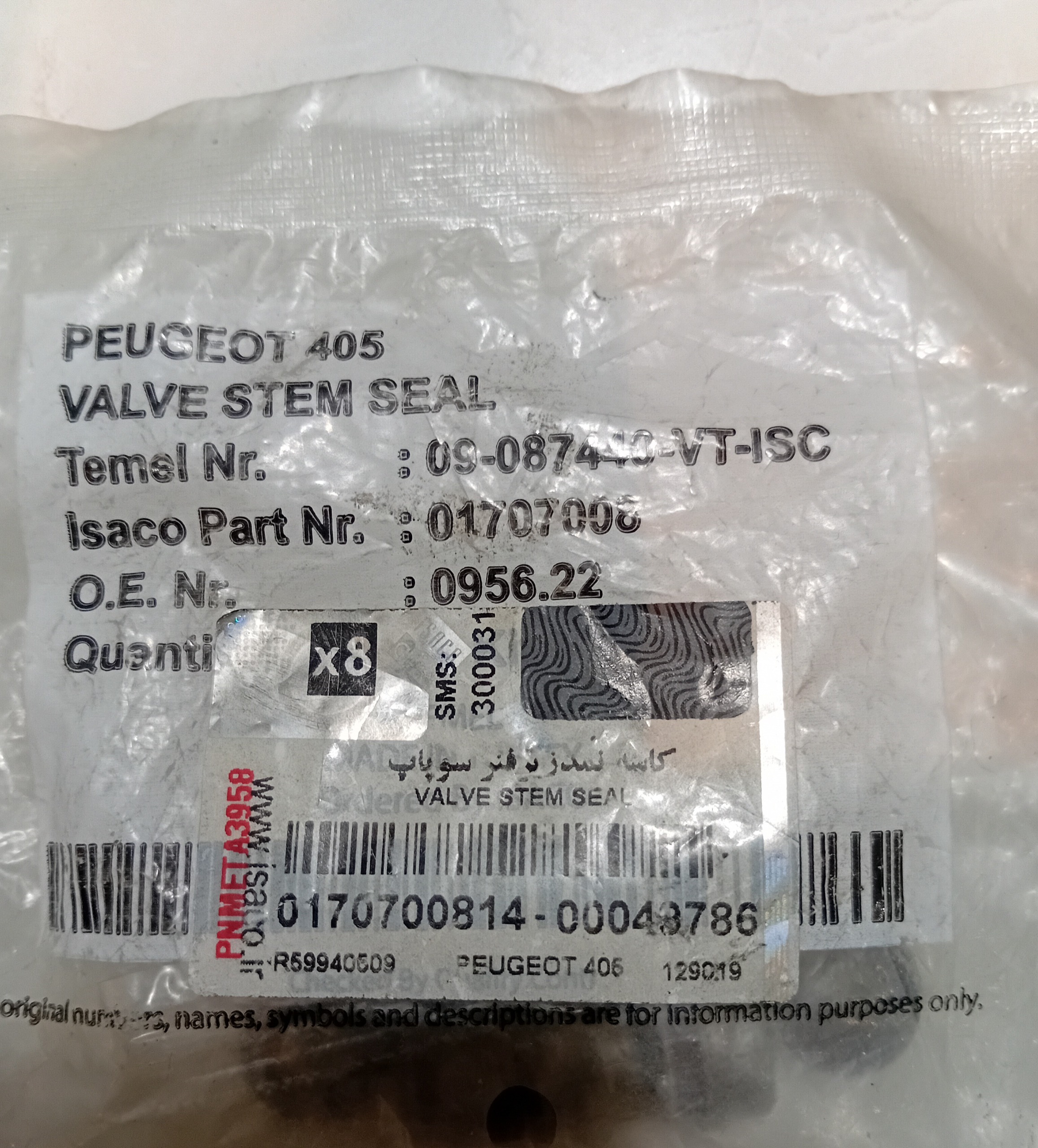 دست 8 عددی لاستیک سوپاپ پژو 1800 اصلی ایساکو آکبند