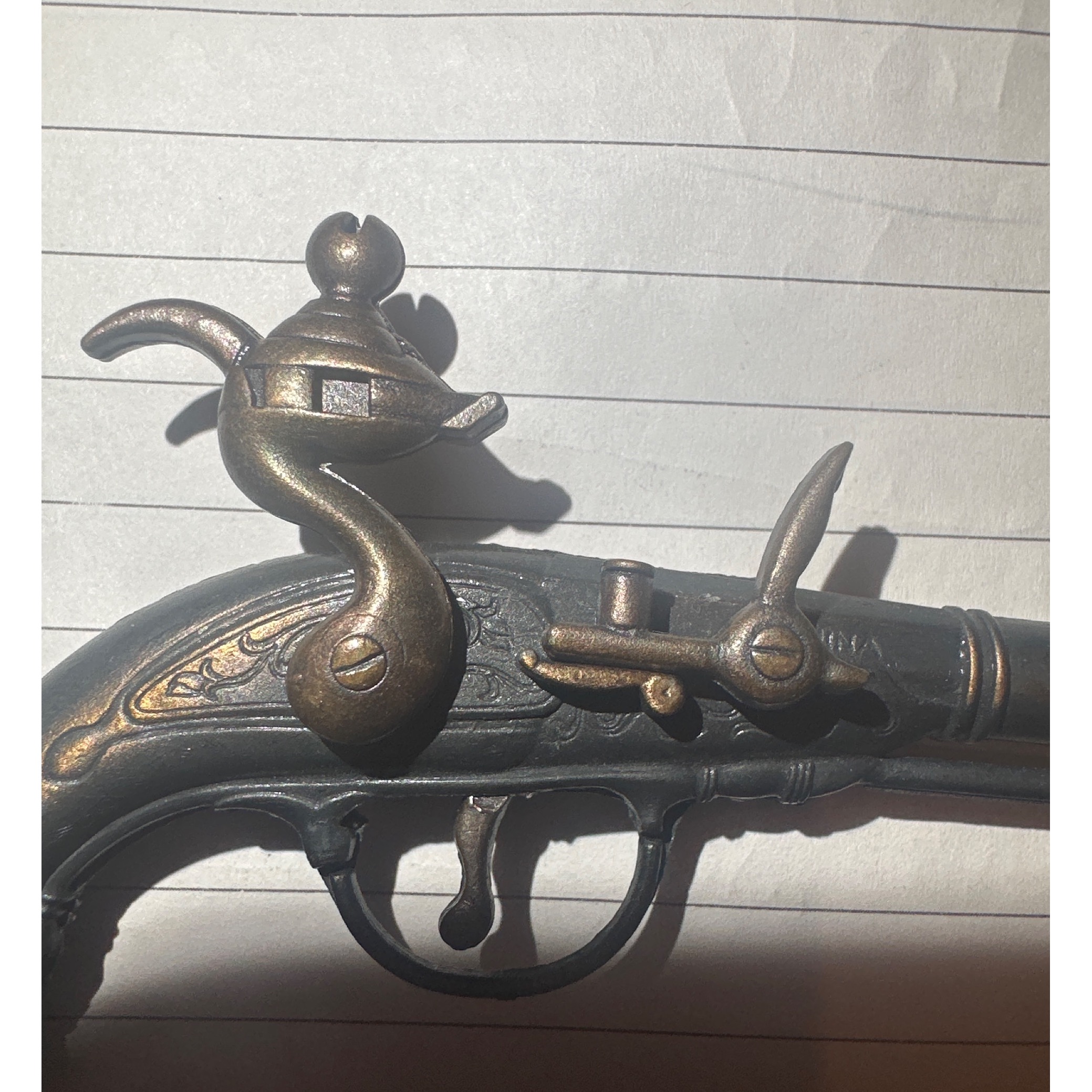 ماکت تفنگ فلزی سرپر . تفنگ ترقه ای میباشد و گلنگدن و ماشه متخرک میباشد .