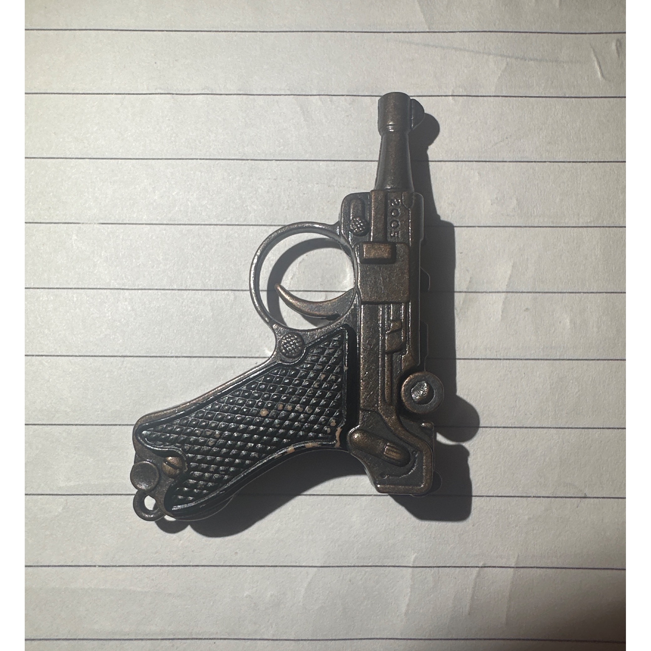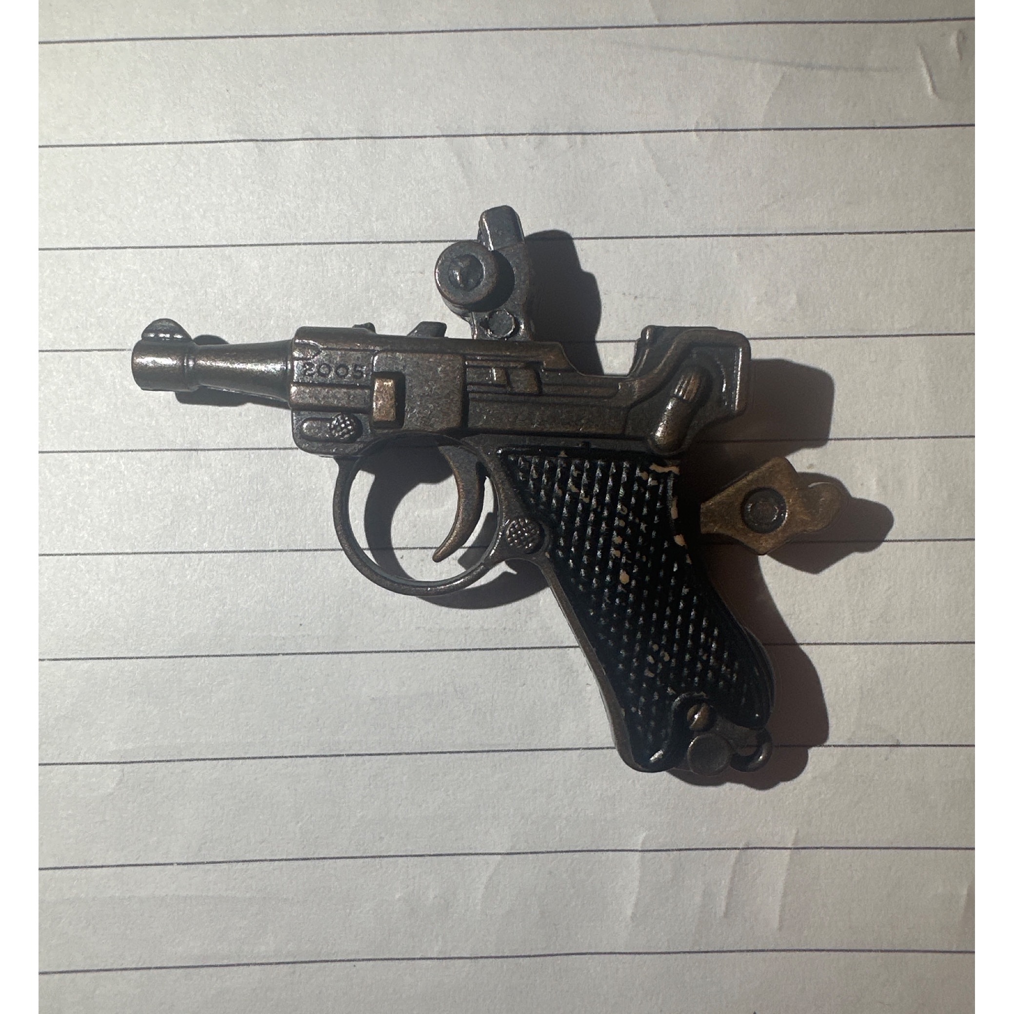 ماکت تفنگ فلزی. تفنگ ترقه ای میباشد و گلنگدن و ماشه متحرک میباشد.