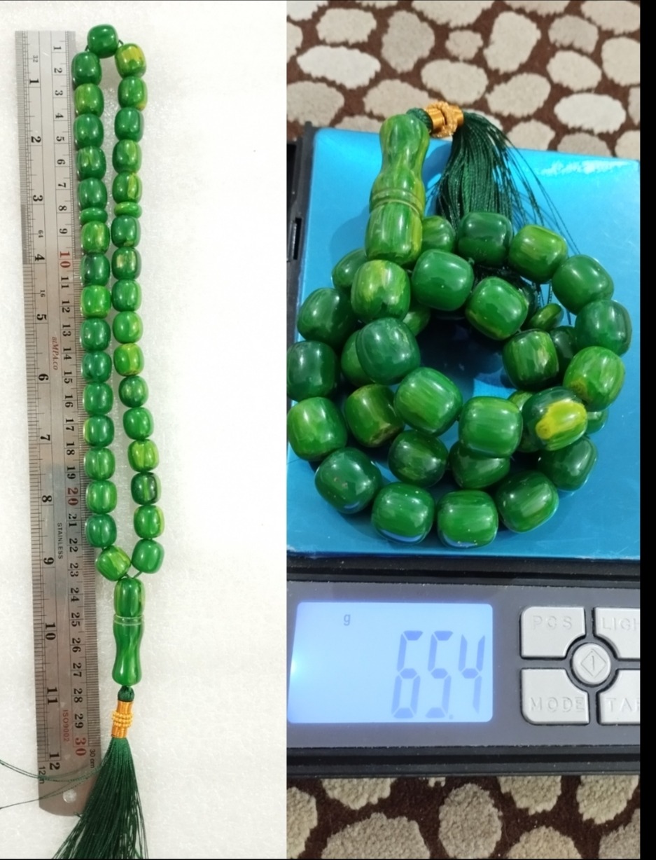 وزن تسبیح طبق عکس با ترازوی دیجیتال بیشتر از 65 گرم است ولی بخاطر اینکه مدیون کسی نباشم وزن پایین تر را نوشتم 65 گرم