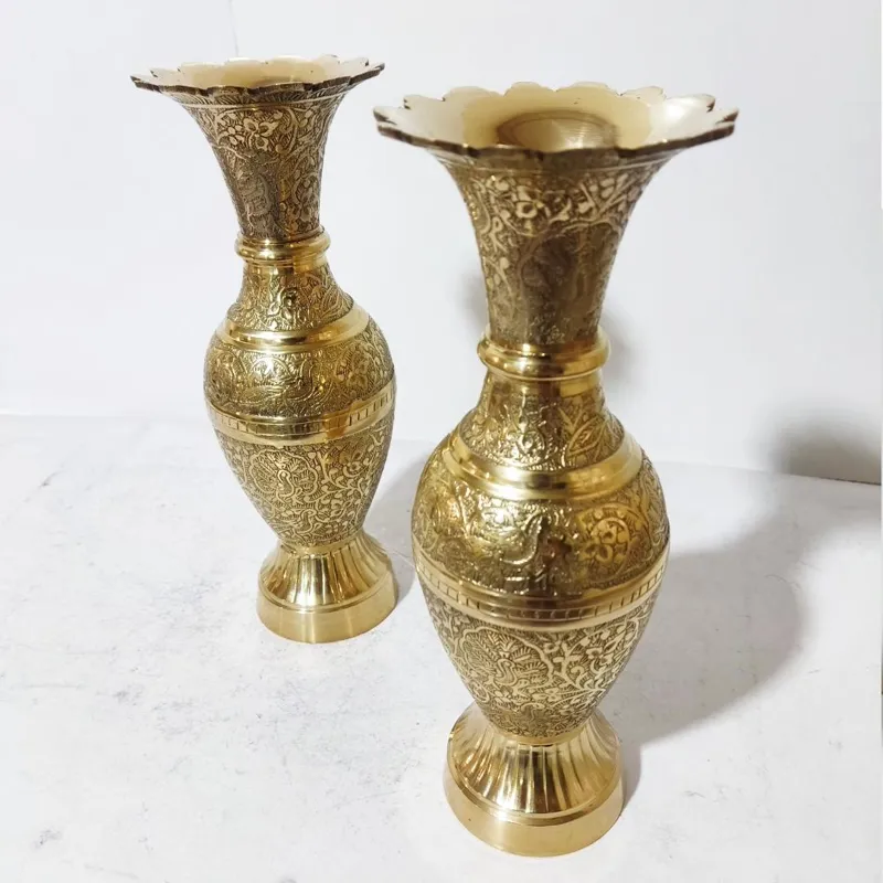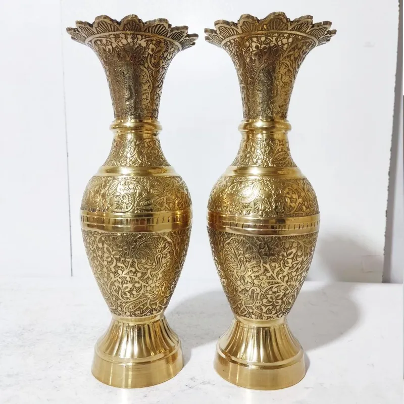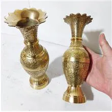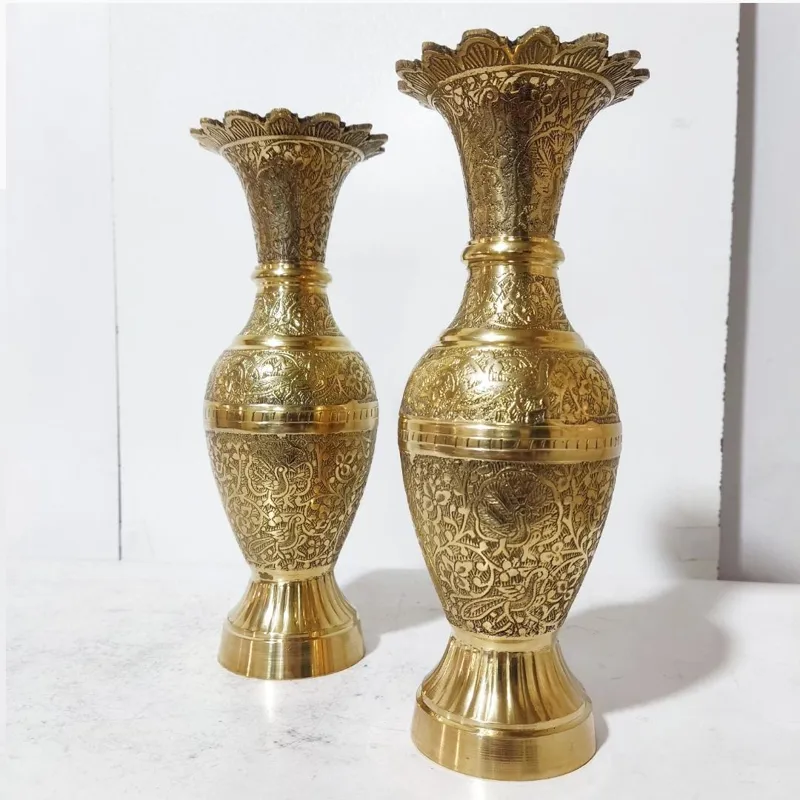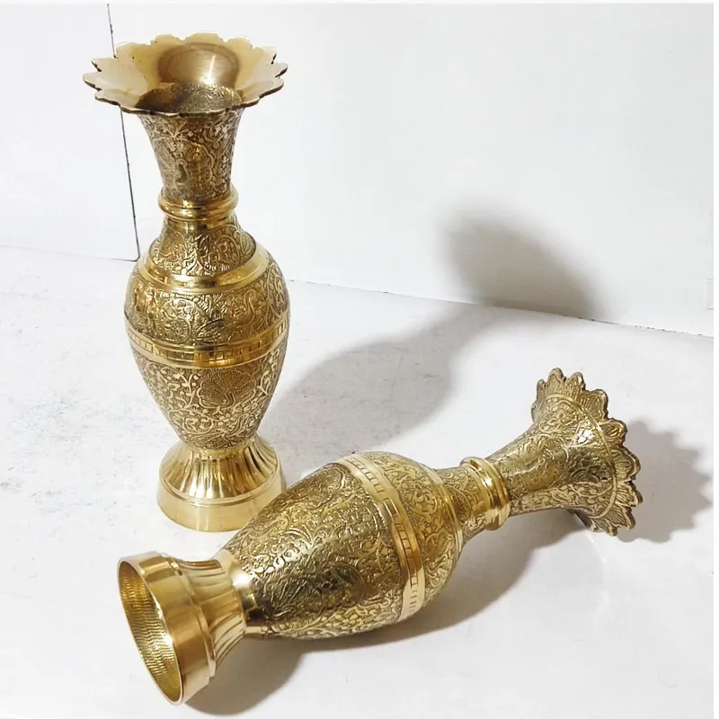 گلدان برنجی هندی با ارتفاع 26 سانت با طرح طاووس