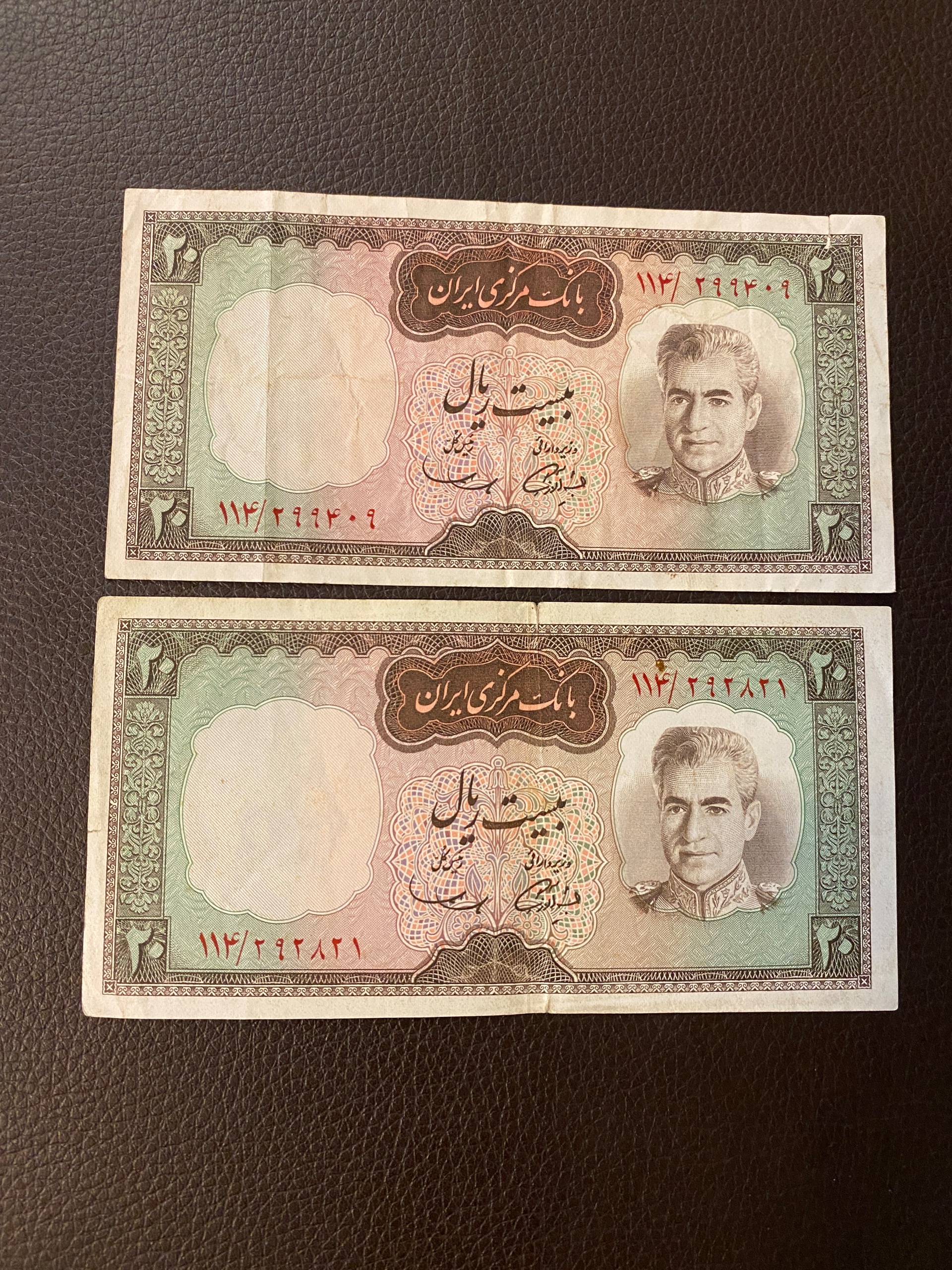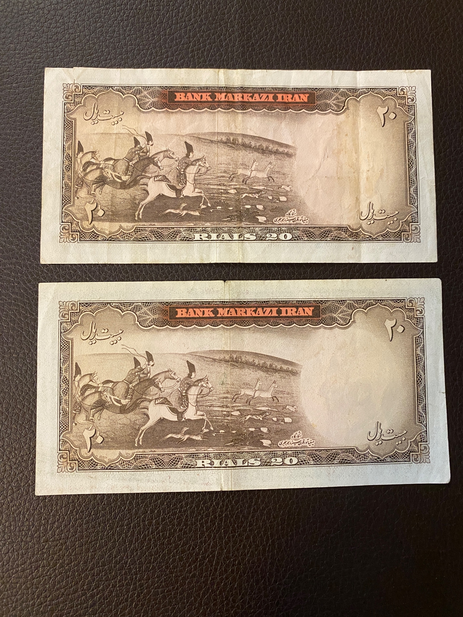 اسکناس بالایی شکستگی و لکه (در پشت) دارد