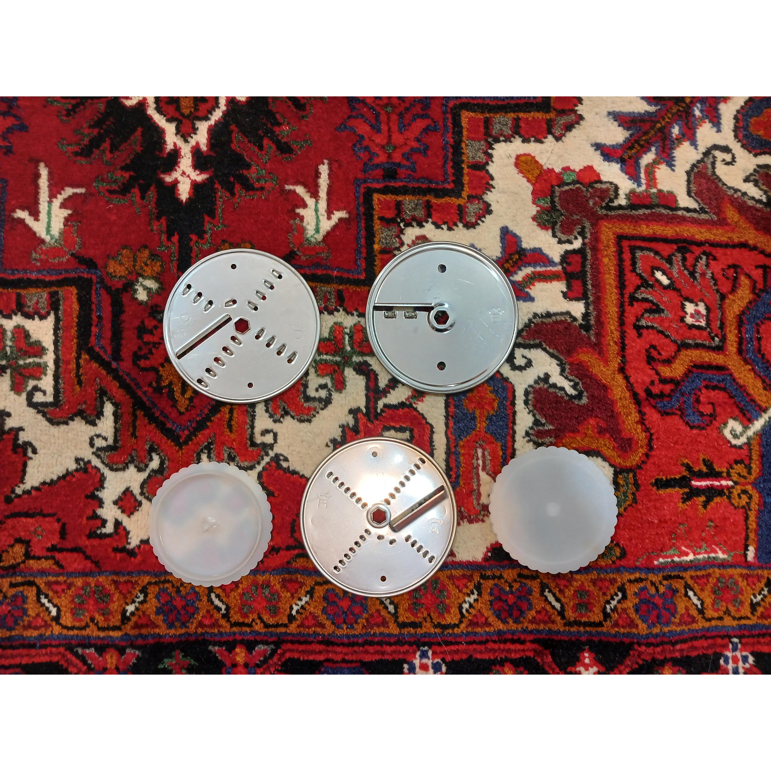 تعداد 3 عدد تیغه استیل مال مولینکس جهت استفاده برای خرد کردن سیب زمینی و هویج و....خارجی سالم و بدون ایراد قابل استفاده مال زمان پهلوی اندازه طول قطر 14 سانت.