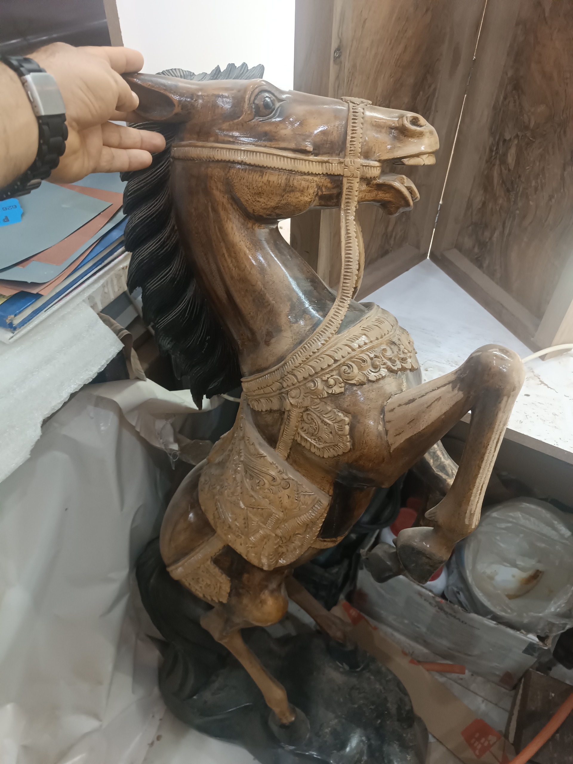 مجسمه اسب چوبی (ارتفاع یک متر) طبیعی و زیبا