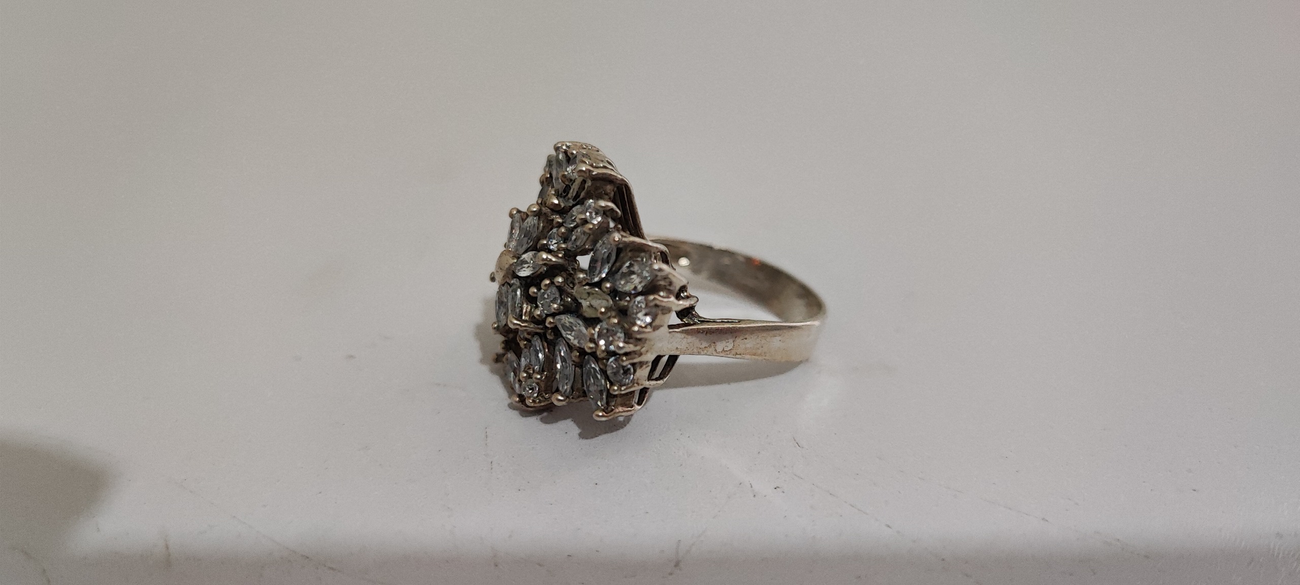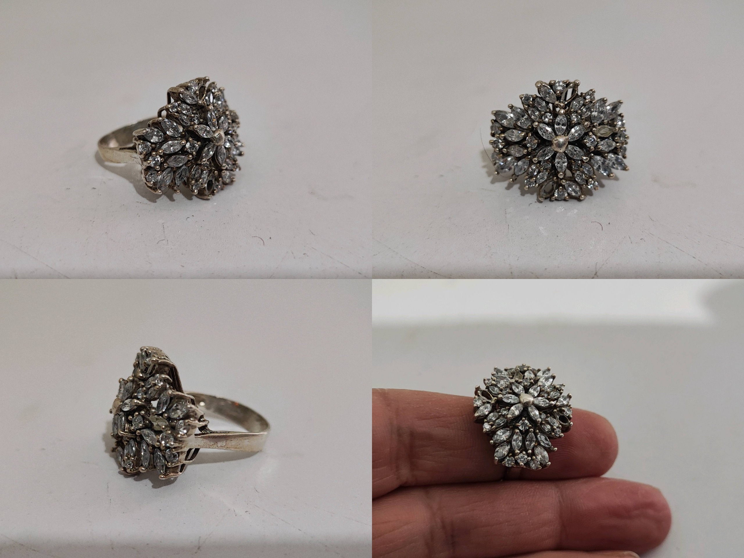سایز 57، وزن 9/9 گرم، سه تا از نگینهای کوچک رو ناقص داره، شیک و زیبا