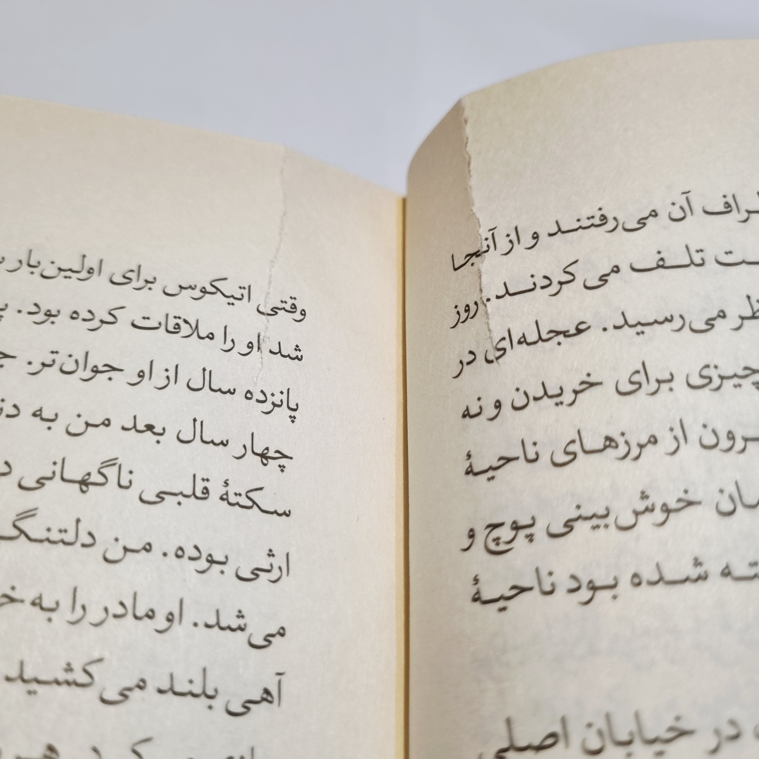 دو ورق از کتاب طبق عکس پارگی 2 سانتی متری داره