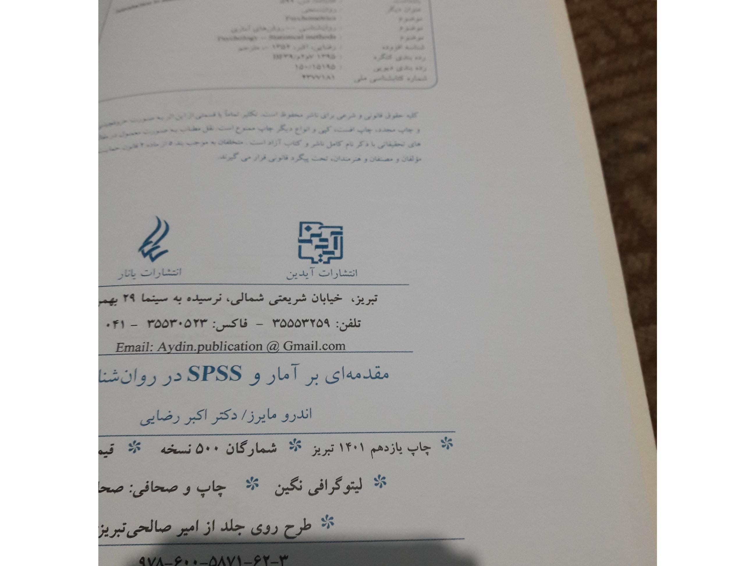 مقدمه ای بر آمار و spss اندرو مایرز .ترجمه رضایی .چاپ 1401 .بسیار تمیز و نو . بعضی ازمونها با مداد کم رنگ تیک خورده که جواب خوب کتاب داره .