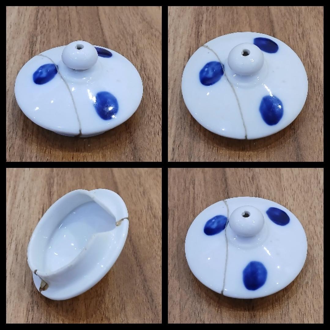 درب قوری روسی و ژاپنی، شکستگی داره، قطر 6/5 سانتیمتر.