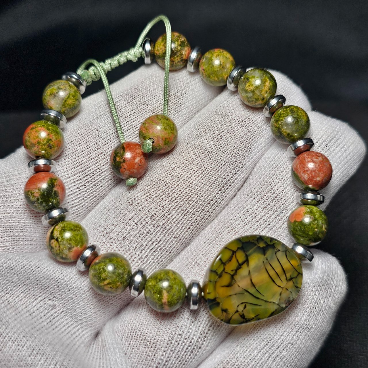 دستبند سنگ عقیق دراگون با مهره های اوناکیت معدنی