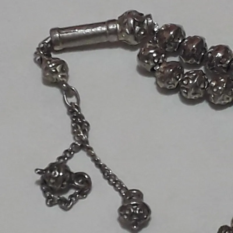 تسبیح قدیمی با روکش نقره ای بسیار زیبا و ظریف