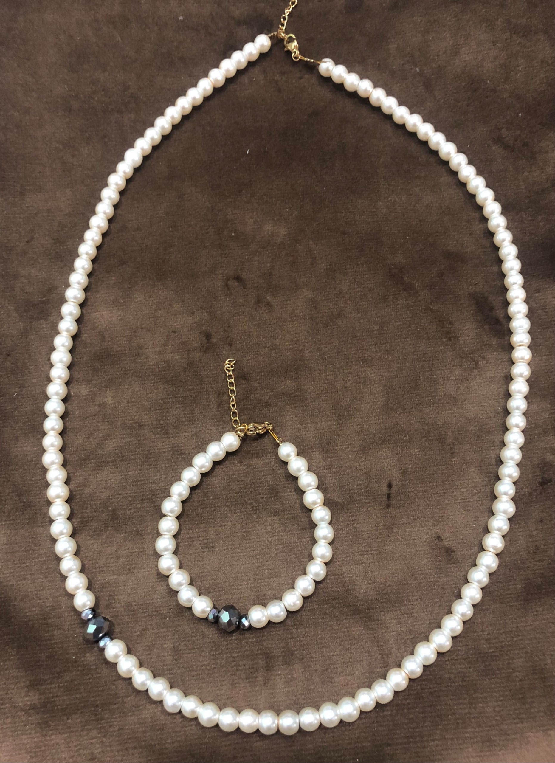 گردنبند و دستبند مروارید و سنگ کریستال نقره ای
