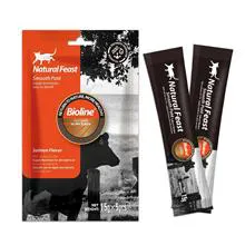 این محصول یک میان وعده خوشمزه و نرم و به صورت پوره برای گربه هاست. به ر احتی خورده میشود و حتی برای گربه های مسن و دارای مشکل دندانی مناسب است. با بسته بندی تیوپی ، میتوان آن را مستقیما به گربه داد یا روی غذای اصلی آن اضافه کرد.