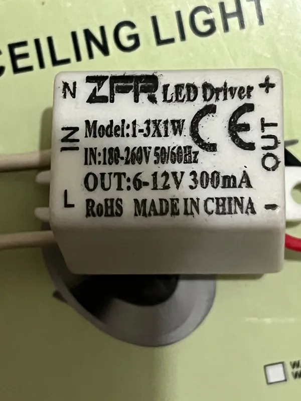 لامپ ال ای دی یک وات سقفی 12 ولت بهمراه ترانس تبدیل 220 ولت به 12