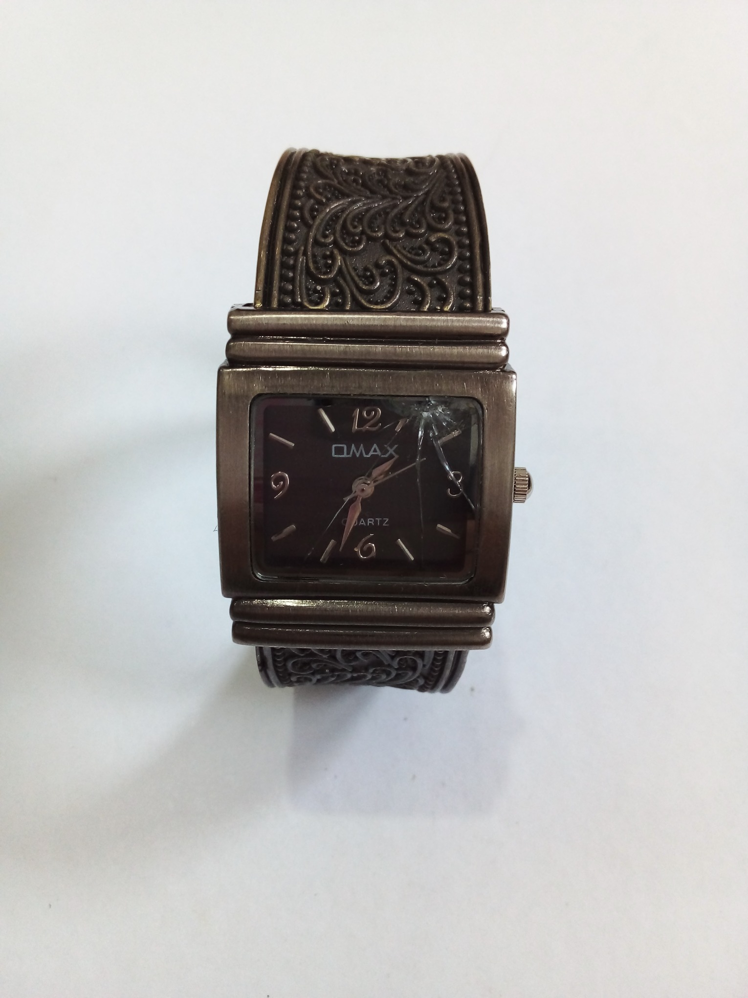 درود و وقت بخیر خدمت عزیزان کاربر و سایت محترم ایسام . ساعت مچی النگویی با فرم صفحه مربعی وشیشه اسیب دیده . برند اوماکس که در حال حاضر کار میکند . عزیزان خریدار قبل از اقدام به خرید لطفا وحتمن عکسها را ببینید وتوضیحات را کامل بخوانید وهر سوالی بود در