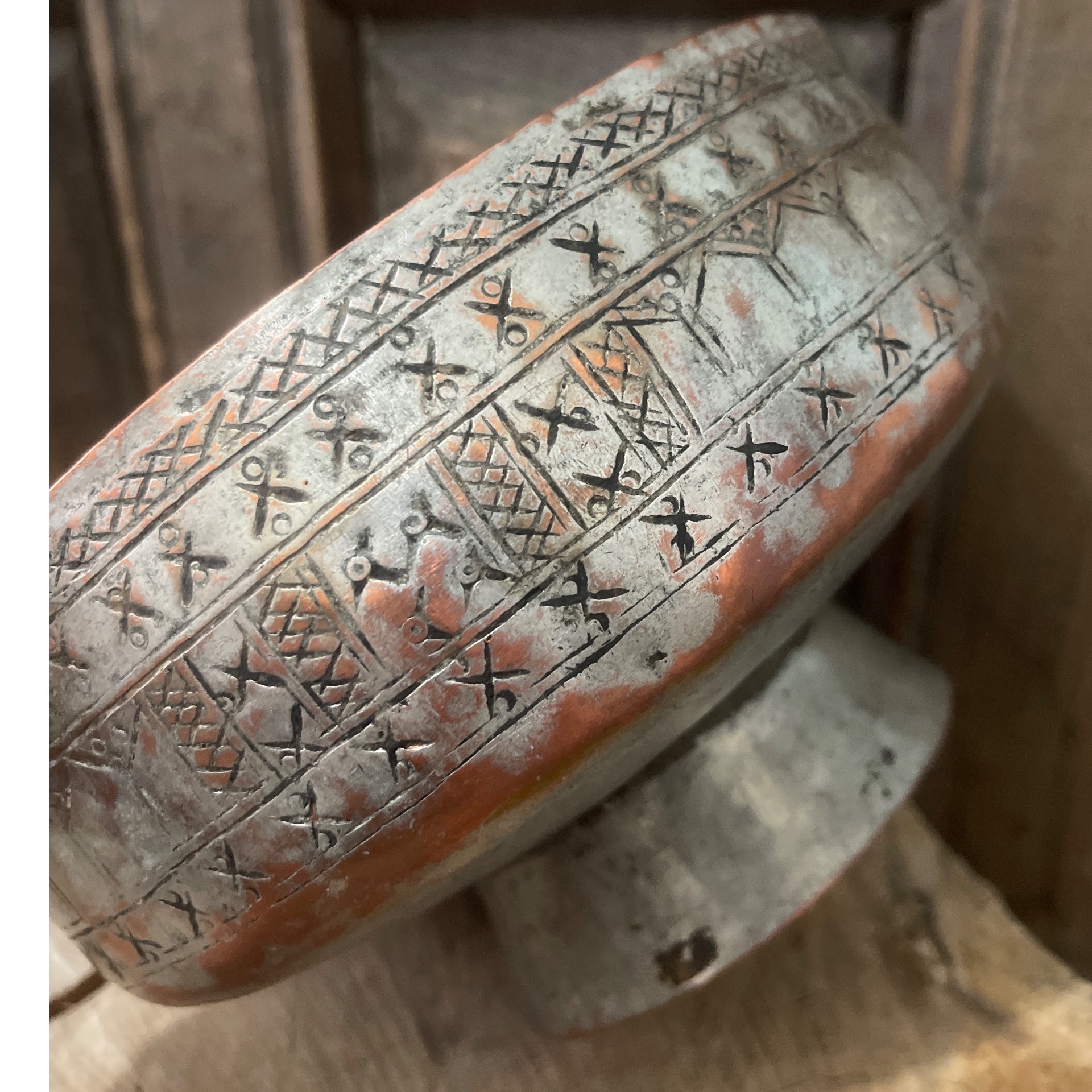 کاسه کعب دار قلمکاری شده مسی قاجاری