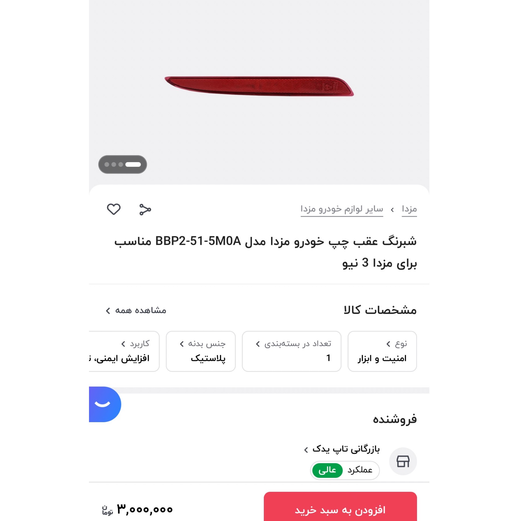 چراغ شبرنگ مزدانیو سپرعقب جفت چپ و راست نوآکبندبسته نشده جفت 5میلیون