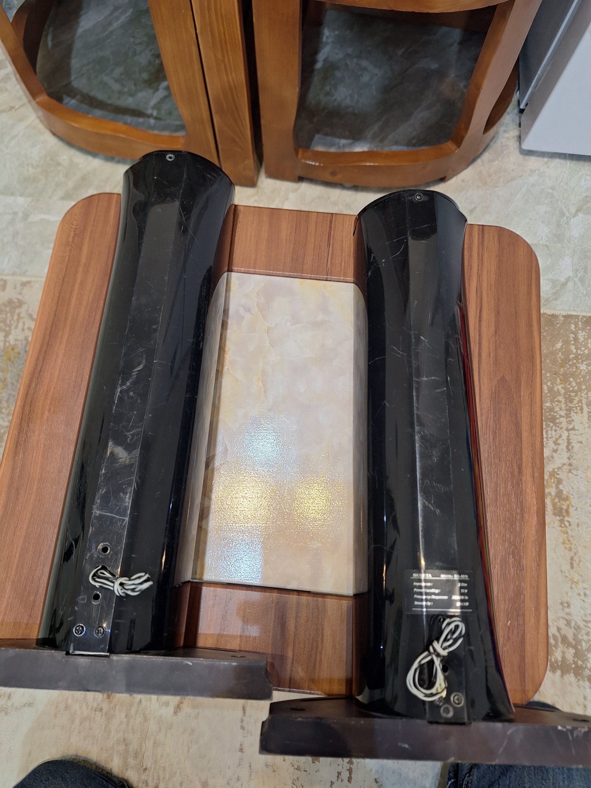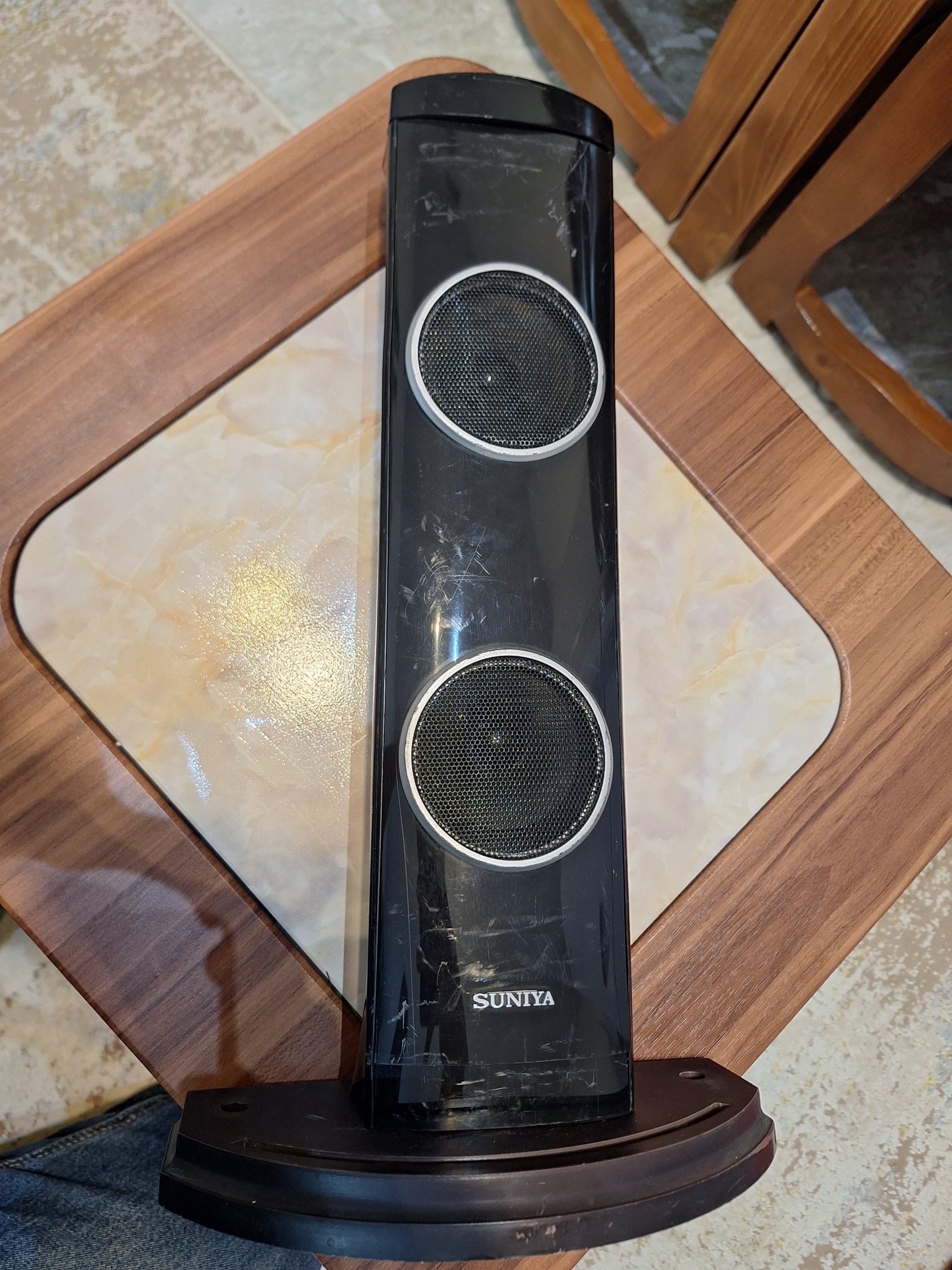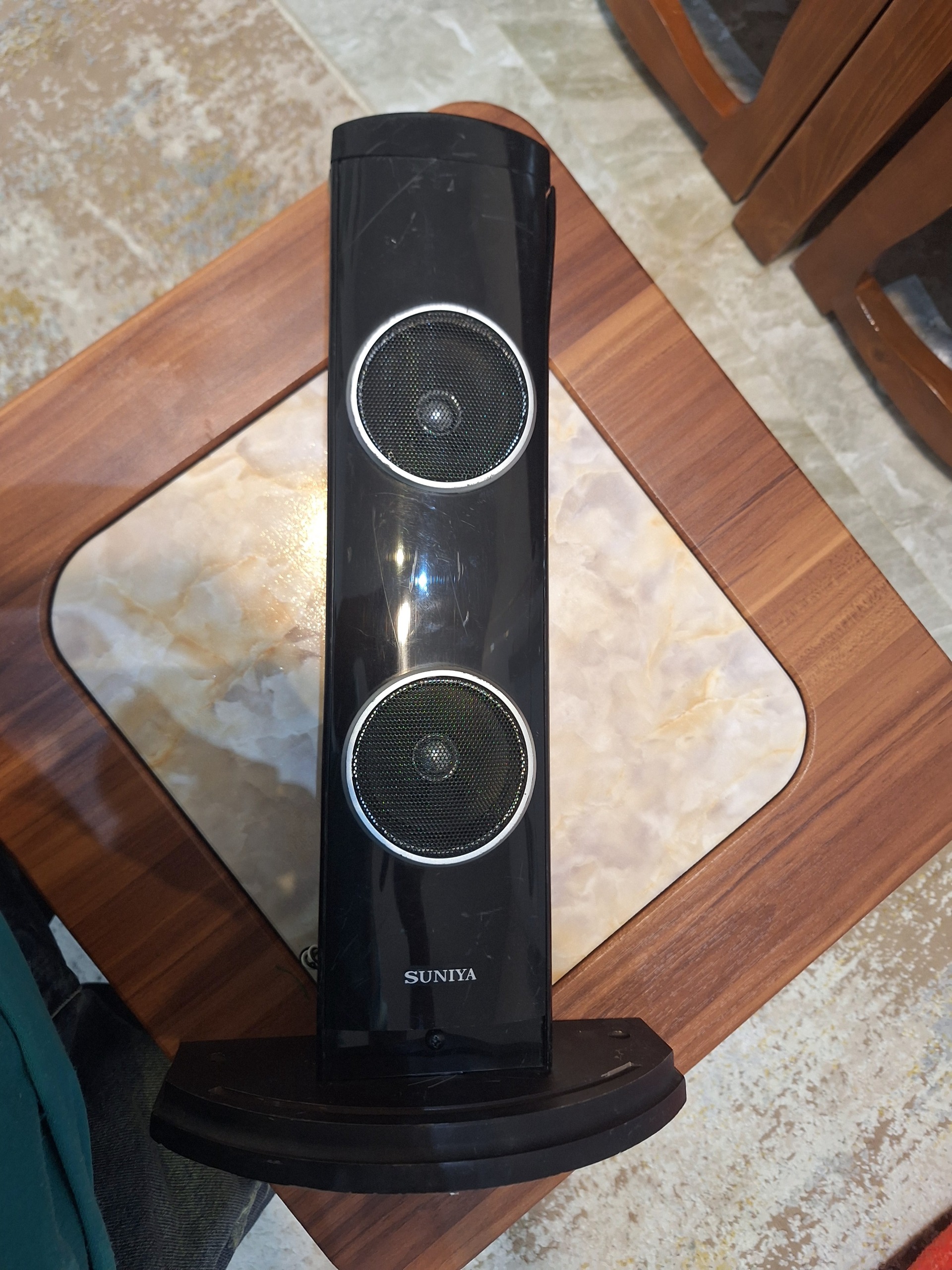 فروش یک جفت باند سینما خانواده از برند سونیا سالم سالم وضوع صدا خیلی خیلی عالی و بلند.فقط یکم باکس مشکل داره که باعت میشه صدا وزوز کنه که درست کردنش کار نیم ساعته.فقط باکس مشکل داره بعضی جاها خم شدگی داره به خاطر گرما ودارای خط و خش.ارتفاع 41 سانت و بلندگو ها هر کدوم 3 اینچ.دقت کنید این بلندگو ها برای بیس زدن نیس.(همه چی تو عکس معلومه)