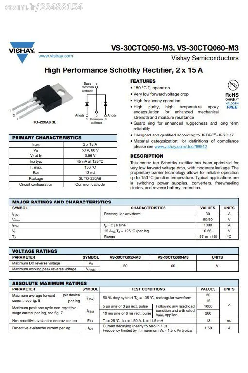 دیود 30 آمپر دوبل 30CTQ060