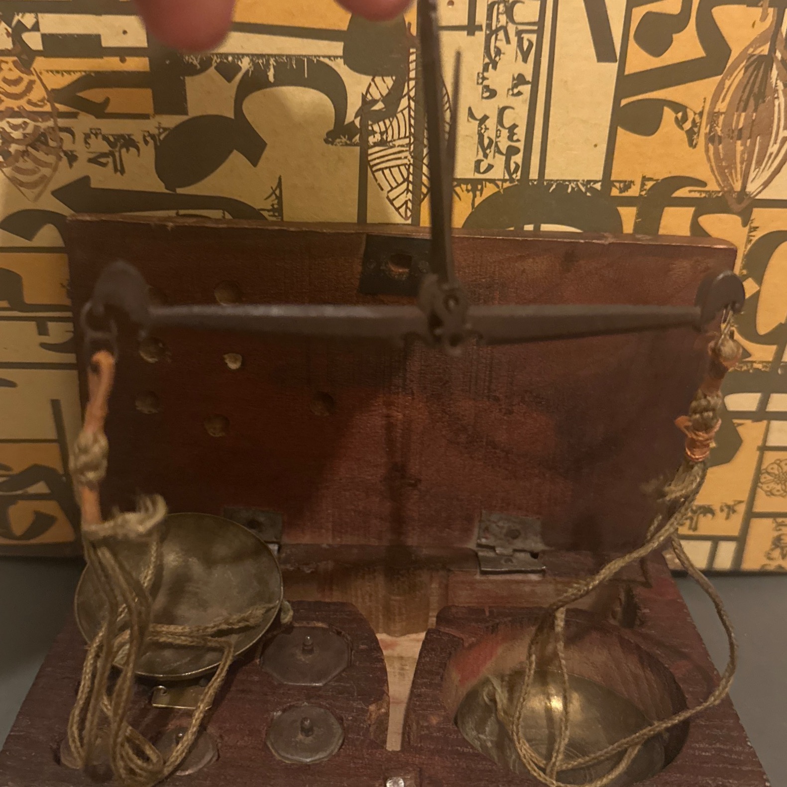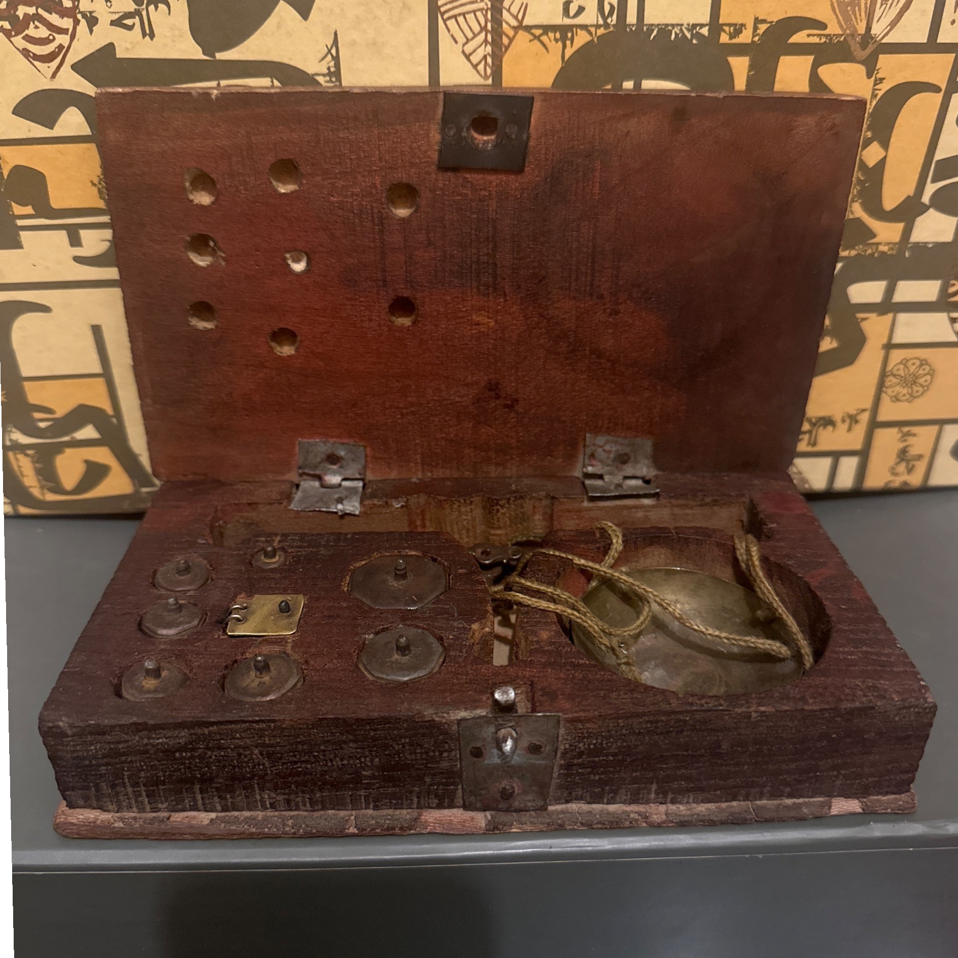 یک اثر کلکسیونی ، ترازو هاشم آنتیک قدمت قاجاری ، سالم ، کامل با وزنه های فولادی طبق عکس . همراه با جعبه چوبی فابریک .