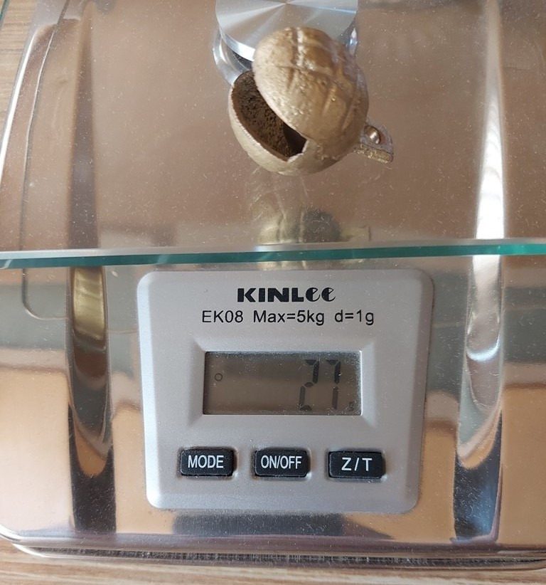 وزن 27 گرم است و فکر میکنم برنج یا برنز یا آلیاژ برنج هست.