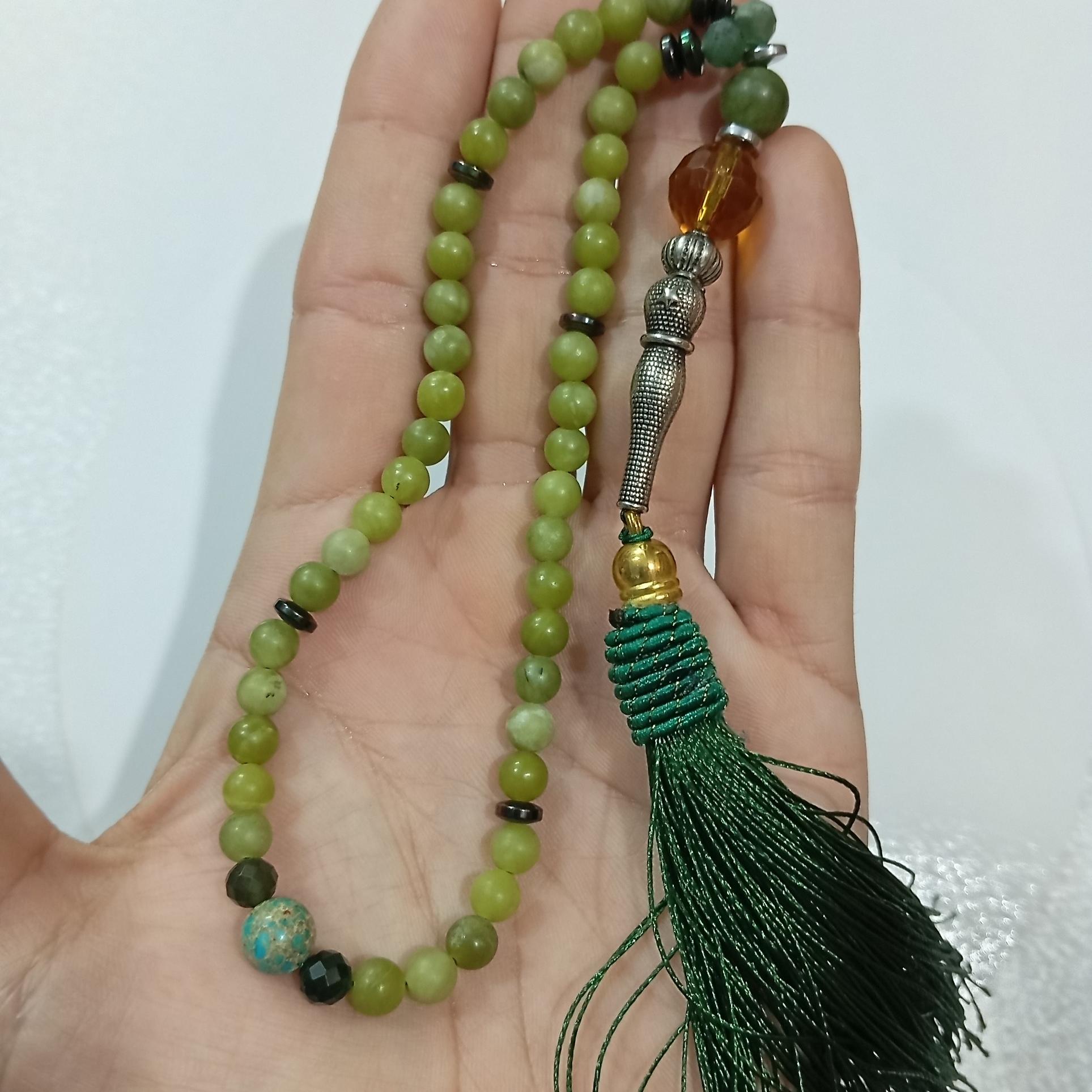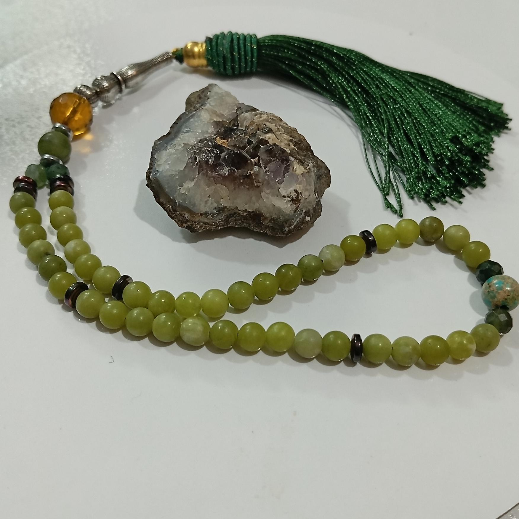 تسبیح جواهری بسیار زیبا و حرفه ای با سنگ مهره ترکیبی یشم