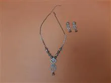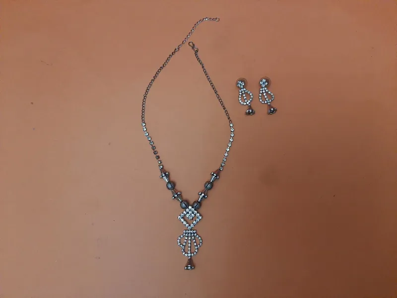 گردنبند و گوشواره . لطفا در هنگام خرید دقت بفرمایید گردنبند و گوشواره کاملا نو است اما تغییر رنگ داده و سیاه شده است .