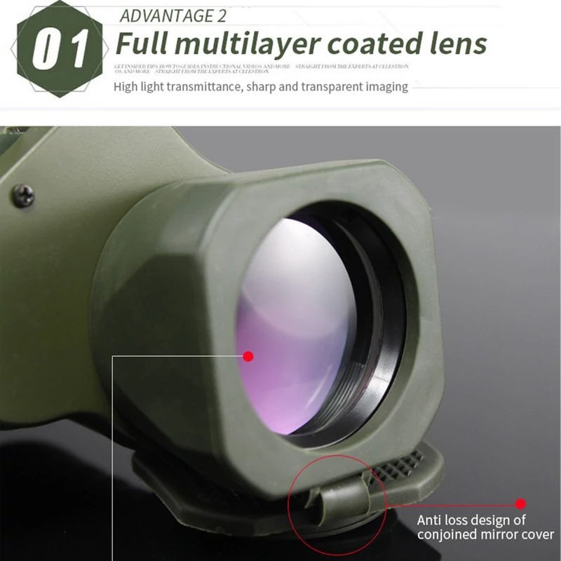 کاملا مقاوم در برابر برف و باران و پاشش آب ، دارای فوکوس مرکزی هیدرو بسیار روان و راحت و دیوپتر چشمی برای اصلاح عیوب انسکاری چشم و استفاده از دوربین با عینک طبی با وسعت دید بی نظیر و فوق العاده عالی در میان دوربین های شکاری کمری 168 فوت در 1000 فوت، دارای