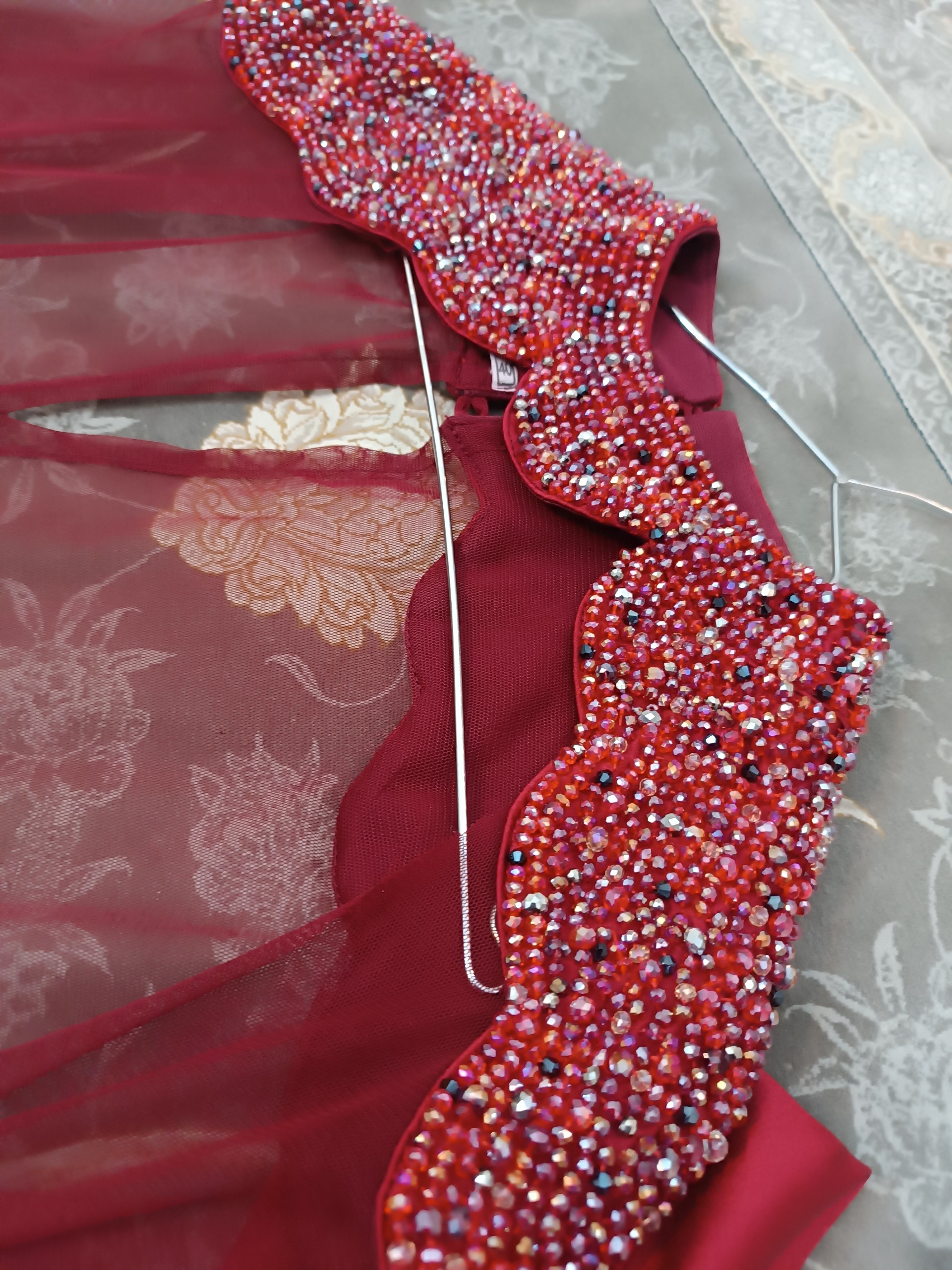 لباس فوق دو تکه جنس لباس ساتن آمریکایی و شنل حریرتور میباشد مناسب سایز 40 به 38 هم اندازه میشه سنگ دوزی شده هست یک مجلس پوشیده شده با نو فرقی نداره تمیز و بدون ایراد خودم 12 و 800 خریدم نصف قیمت هم کمتر گذاشتم