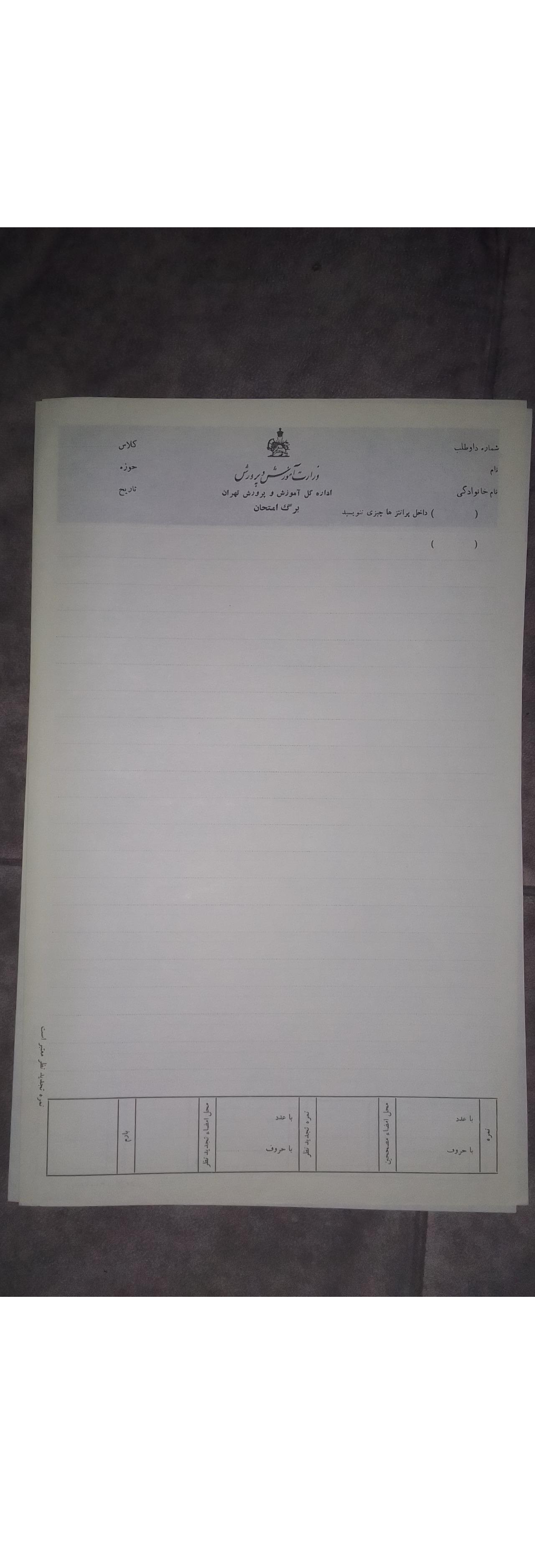 برگه امتحانی قدیمی