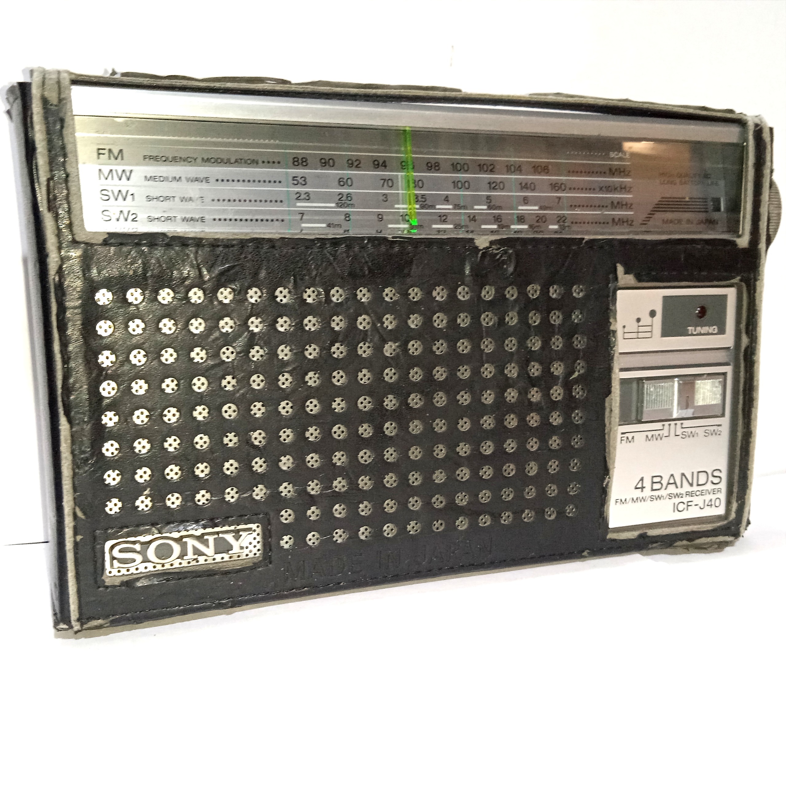 ژاپن ،، گذر زمان باعث پوسته پوسته شدن کاور چرم مانند این رادیو گردیده ولی همچنان بدنه و سیستم داخلی آن نو و دست نخورده باقیمانده است.