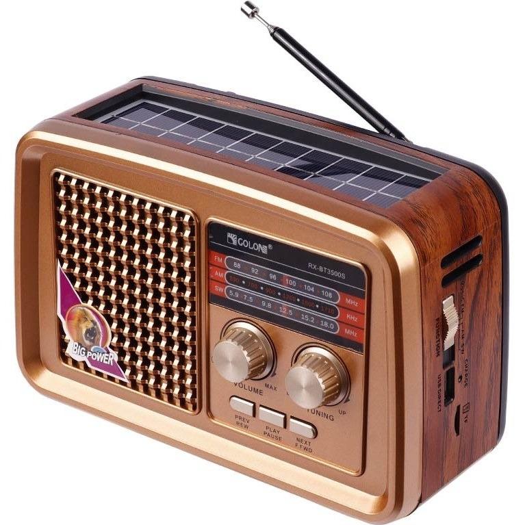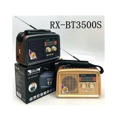یکی از معروفترین شرکتهای تولیدکننده رادیو و اسپیکر در دنیا شرکت GOLON است. محصولات این شرکت به بیش از 100 کشور دنیا صادر میشود .از ویژگیهای این شرکت میتوان به طراحی و کیفیت بالای محصولات این آن اشاره کرد.این رادیو قابلیت دریافت تمام فرکانسهای رادیویی(FM,AM,SW) و همچنین پخش موسیقی از طریقUSB,TF و بلوتوث طراحیشده است و کیفیت صدای بالایی دارد. رادیو اسپیکر Golon RX-BT3500S مجهز به فناوری پنل خورشیدی است. از مزایای آن میتوان به آنتن تلسکوپی، چراغقوه، بلوتوث و طراحی زیبای آن اشاره کرد. این رادیو دارای باتری شارژی بوده که قابلیت استفاده به صورت سیار و بدون نیاز به برق در مواقع اضطراری را دارد .همچنین این اسپیکر قابلیت استفاده با باتری و همچنین اتصال مستقیم به برق شهری را دارا است