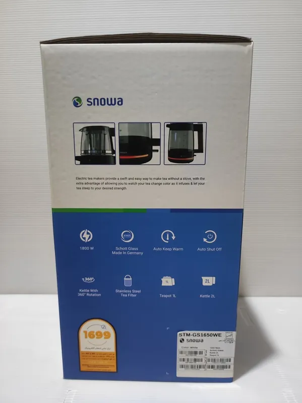 - دستگاه چای ساز شیشه ای لوکس اسنوا دارای قابلیت warm keep Auto است بدین سبب، پس از جوش آمدن آب دستگاه به صورت اتوماتیک به حالت گرم نگهداشتن آب می رود.