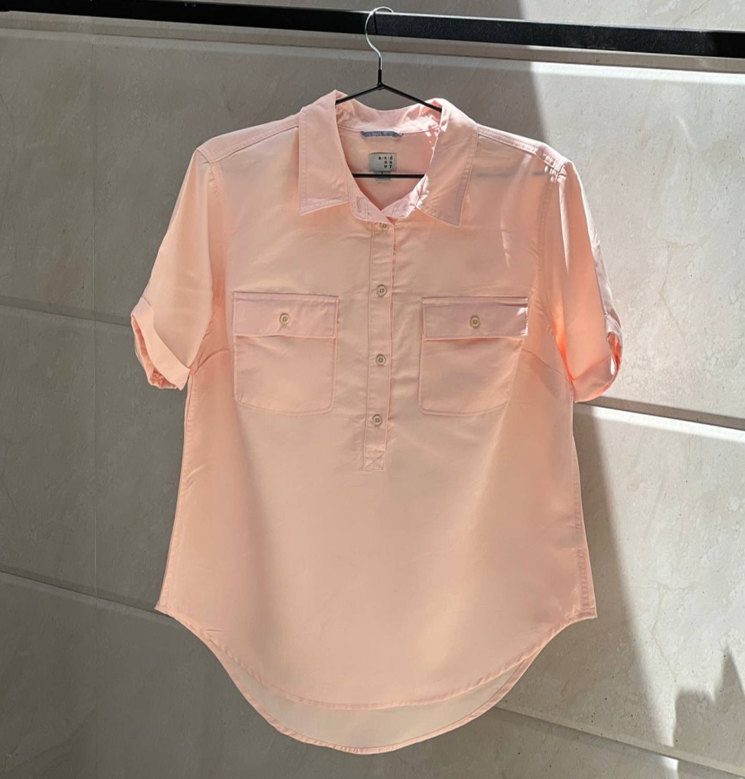 شومیز صورتی مارک and eawy سایز s تولید ویتنام جنس 100 درصد ریون فاصله دو زیر بغل 48 سانتیمتر، قد پشت از یقه 69 سانتیمتر قد جلو از یقه 61 سانتی متر نو است اتیکت ندارد