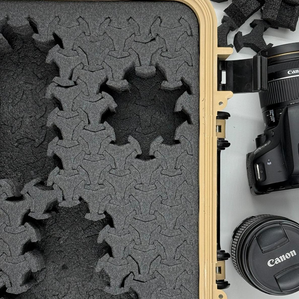فوم پازلی داخل آن دارد که قابلیت چیدمان دارد و به راحتی می توانید کالای خود را به دفعات با چیدمان مختلف درون آن قرار دهید.
