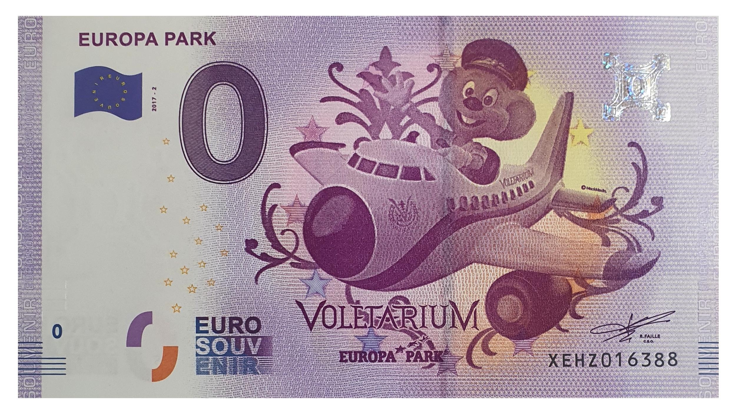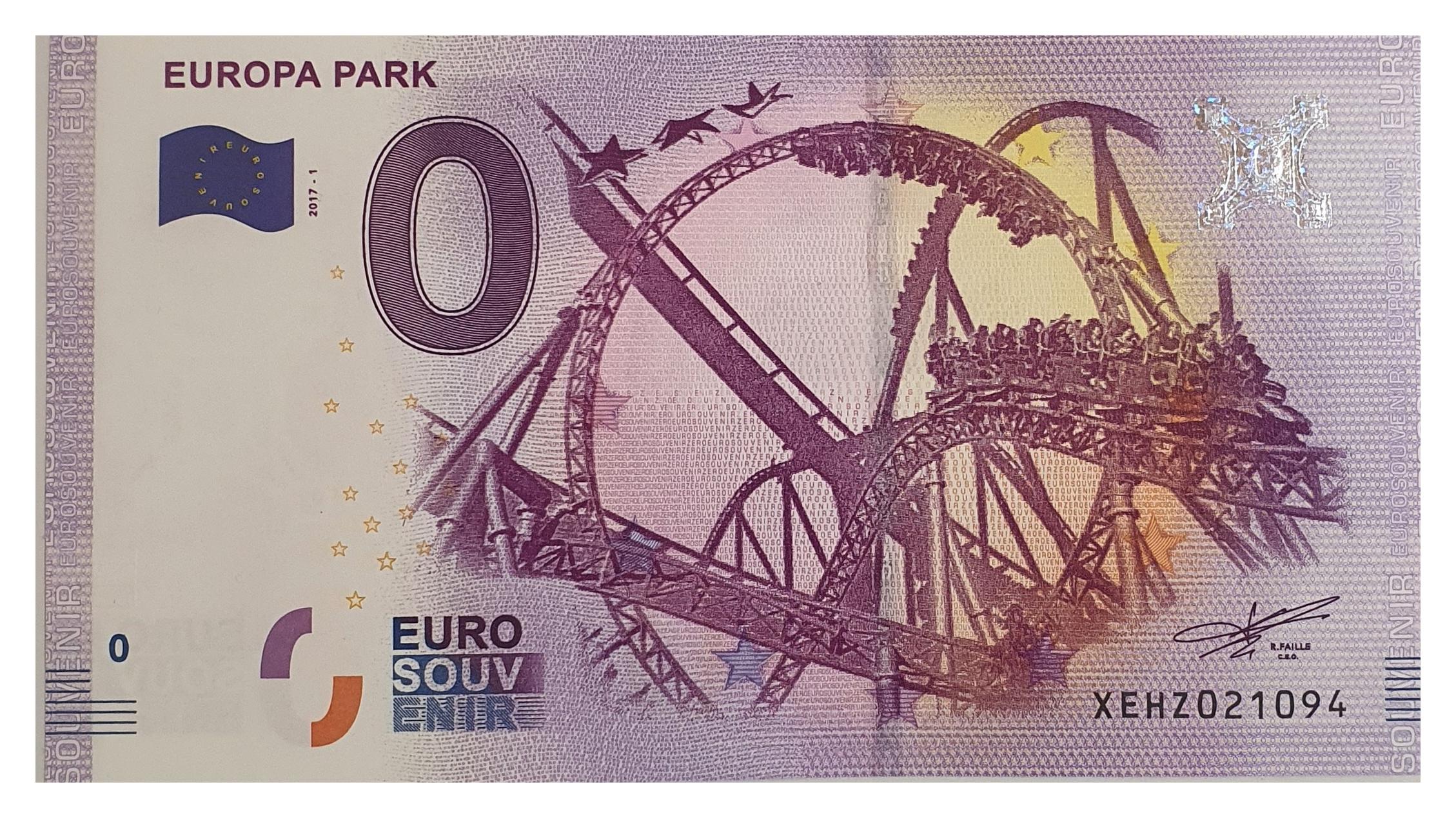 این اسکناس یادگاری یا کلکسیونی برای سوغاتی و جاذبه در پارک تفریحی Europa Park واقع در شهر راست Rust در ایالت بادن وورتمبرگ آلمان طراحی شده است و همه ویژگی های امنیتی اسکناس را دارد .